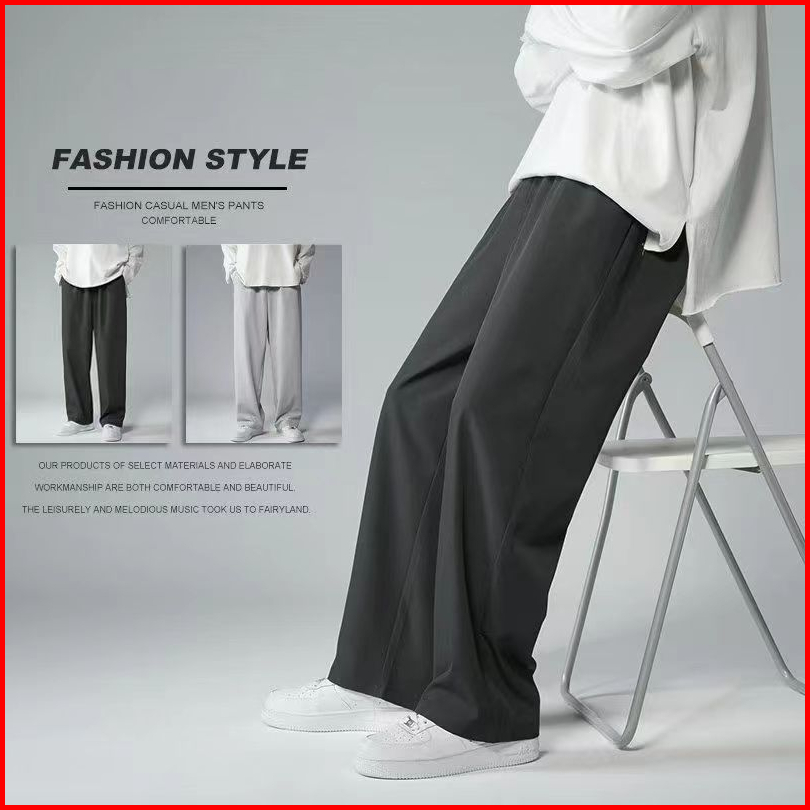 Keyboy Celana Korean Style Pria Hitam Baggy Pants Celana Kulot Cowok Dewasa Sutra Es Casual