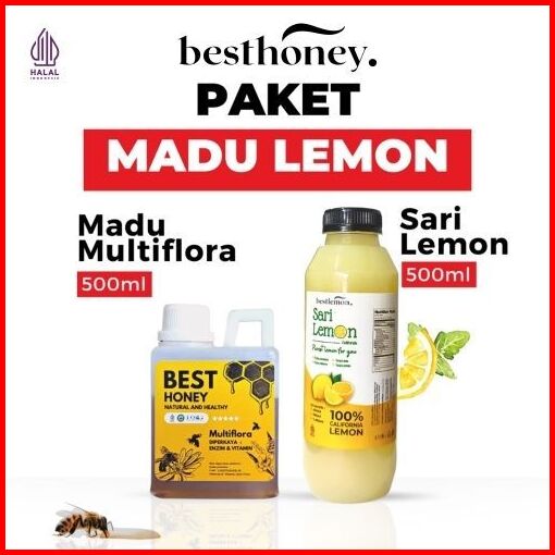 Best Honey Paket Bundling Diet Alami Sari Lemon 500ml Madu Multiflora 500gr