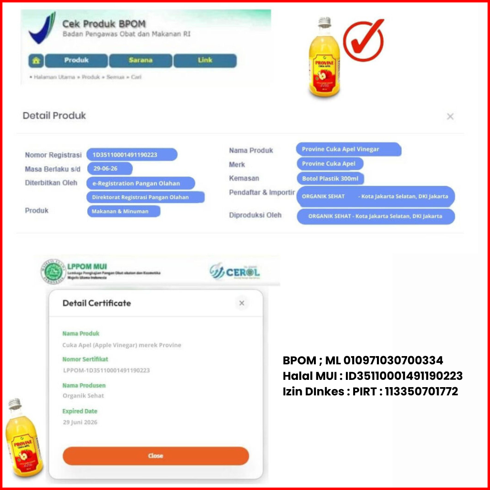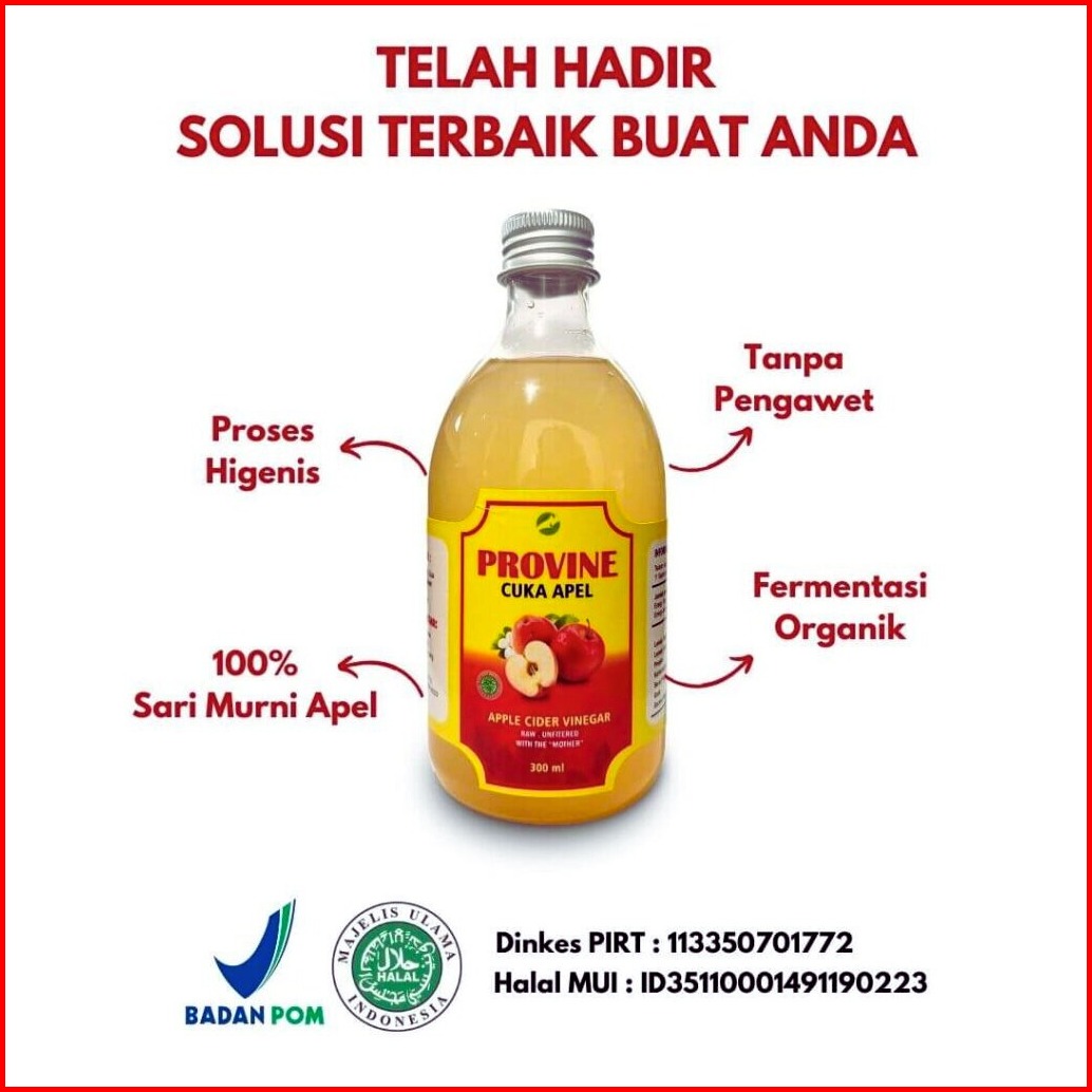 Paket 2 Botol Provine Cuka Apel Premium Halal Bpom Apple Cider Vinegar Premium With Mother