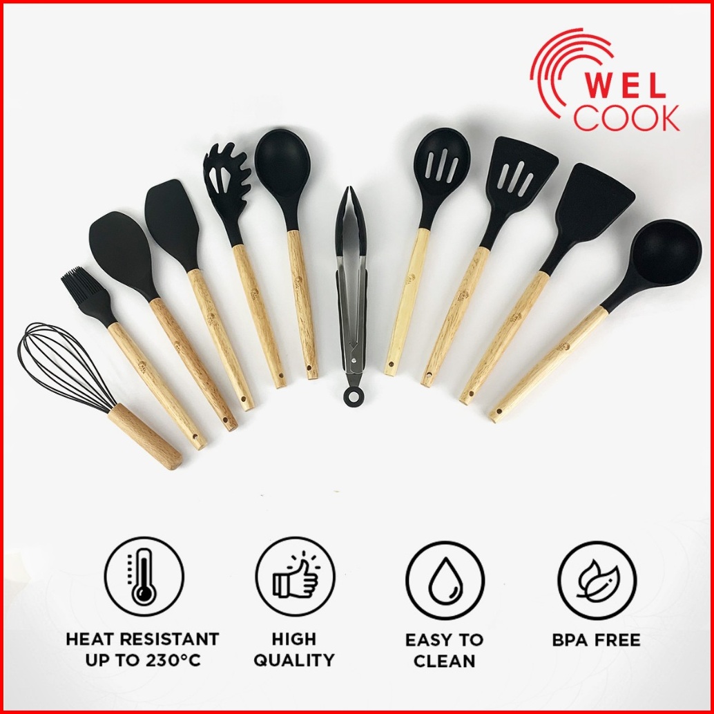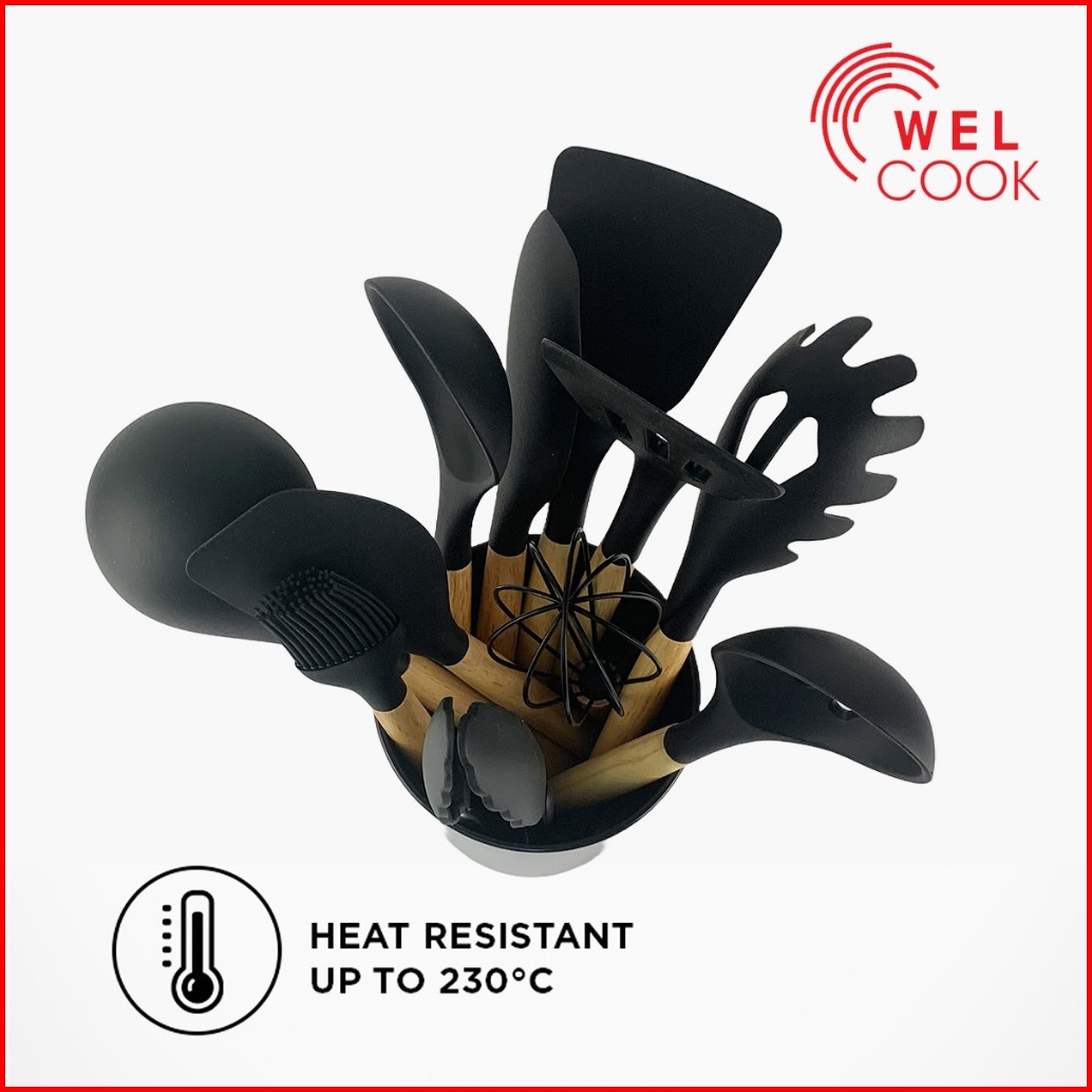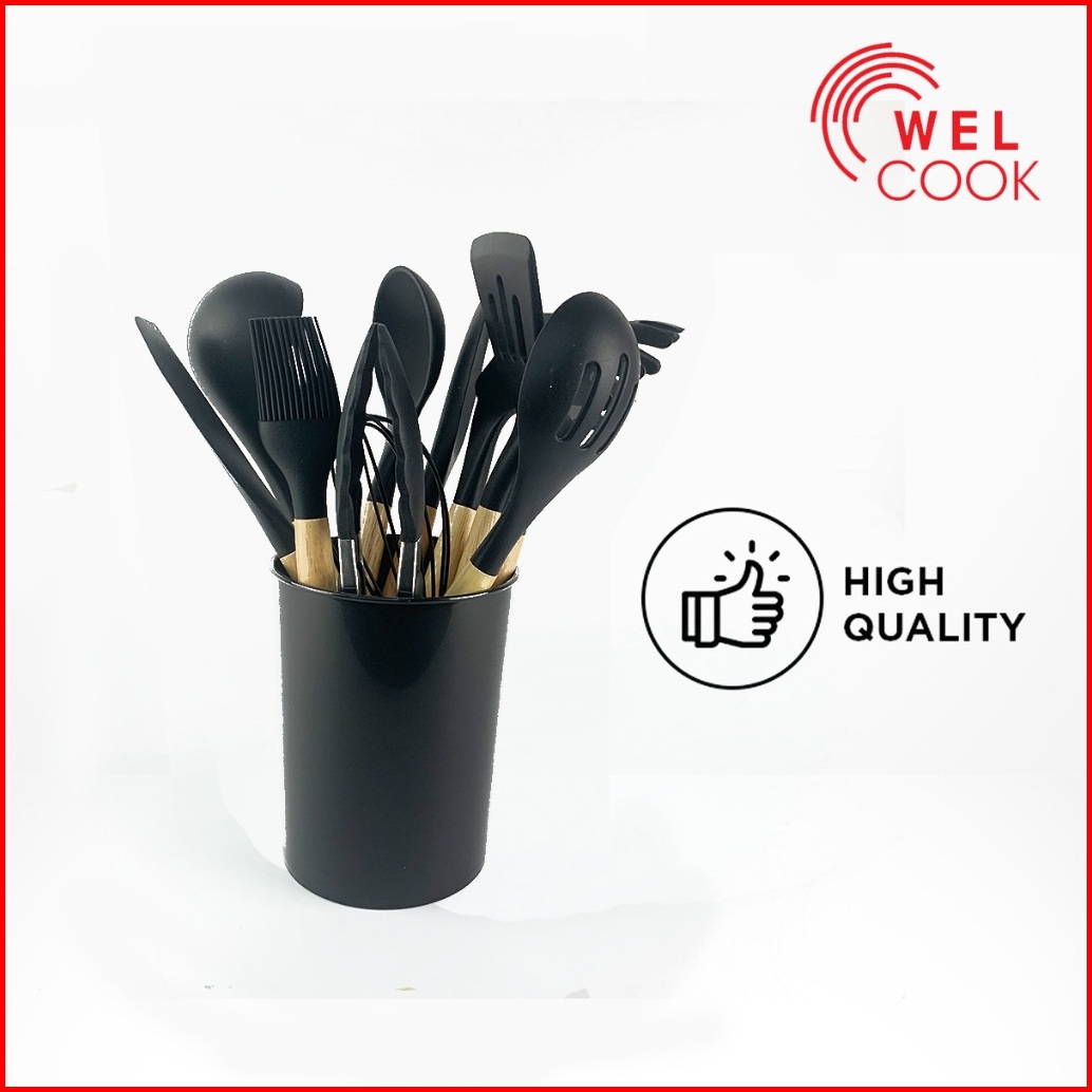 Welcook Sutil Utensils Silicone Peralatan Masak Set - Black