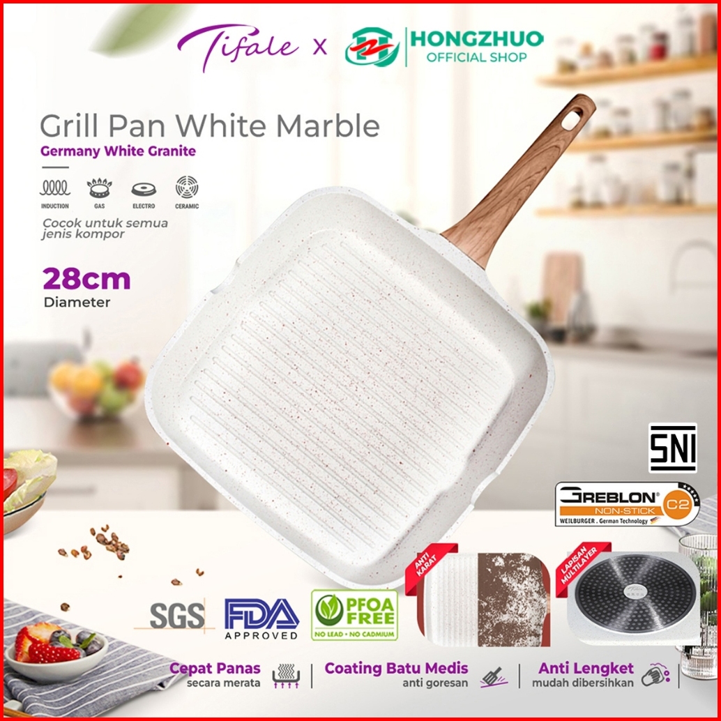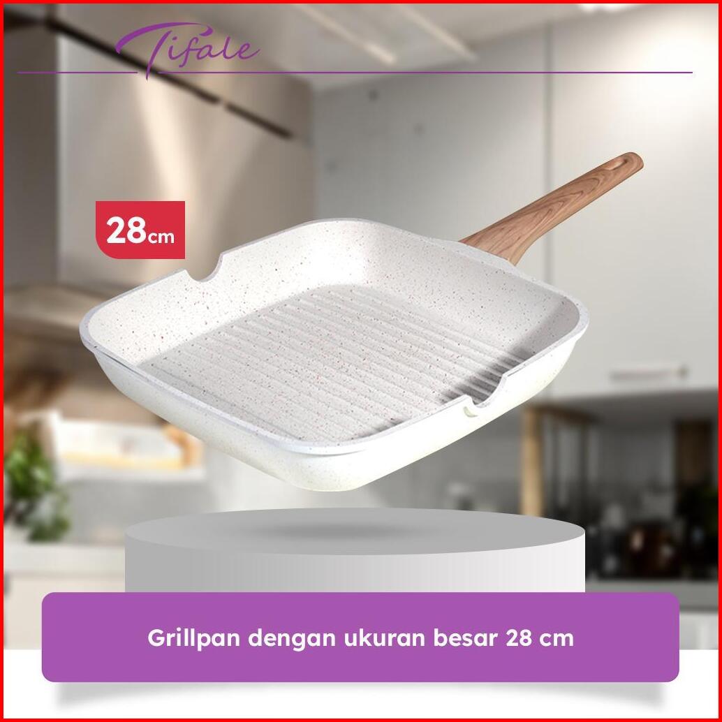 Tifale Grillpan 28 Cm White Granit Grill Pan Peralatan Masak Dapur Anti Lengket