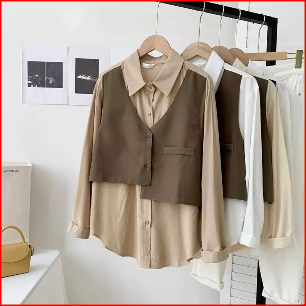 Wafel Hem Top Atasan Kemeja Wanita Shirt Blouse Premium Korean Style