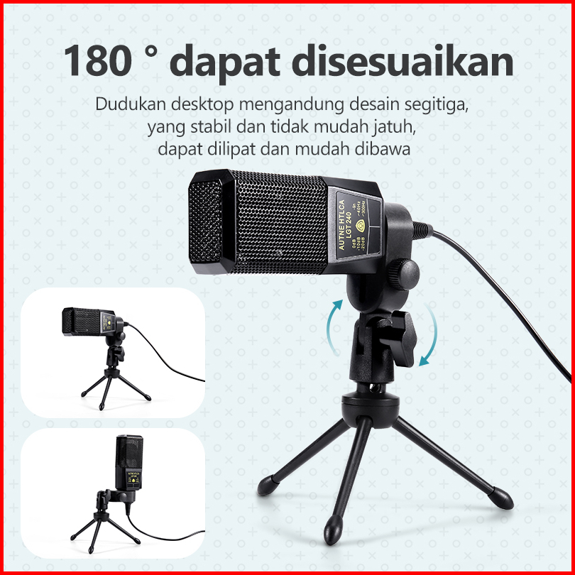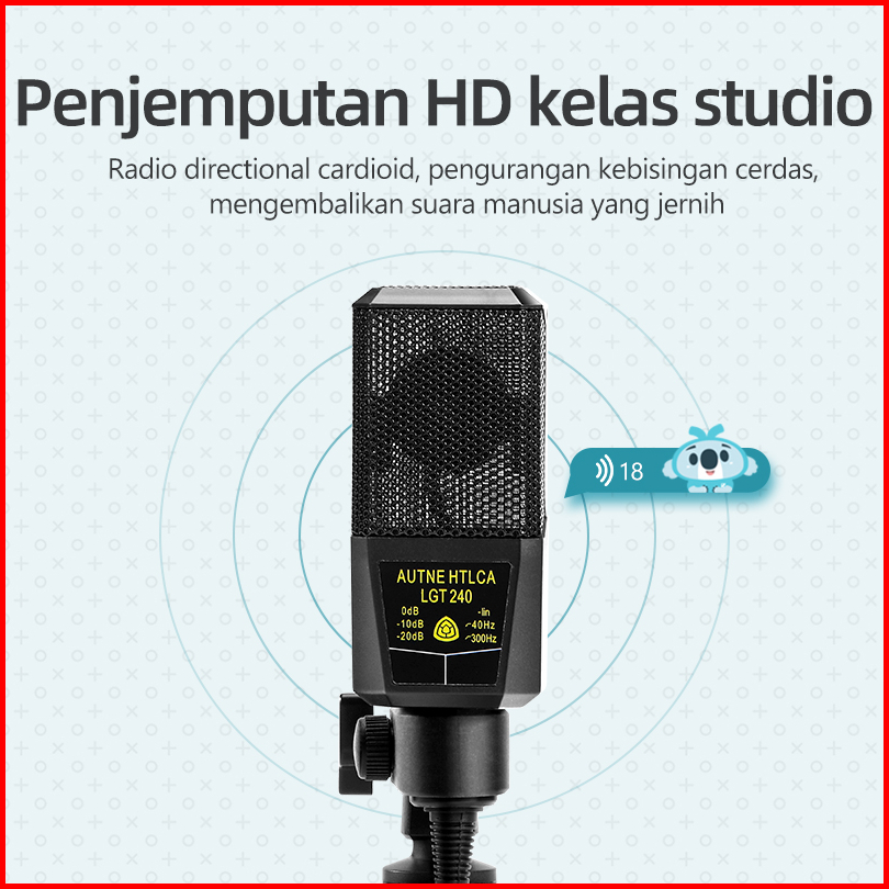 Hot Aston Microphone Konten Kreator At-us19 Black Mic Condenser With Tripod Stand Pop Filter Asli