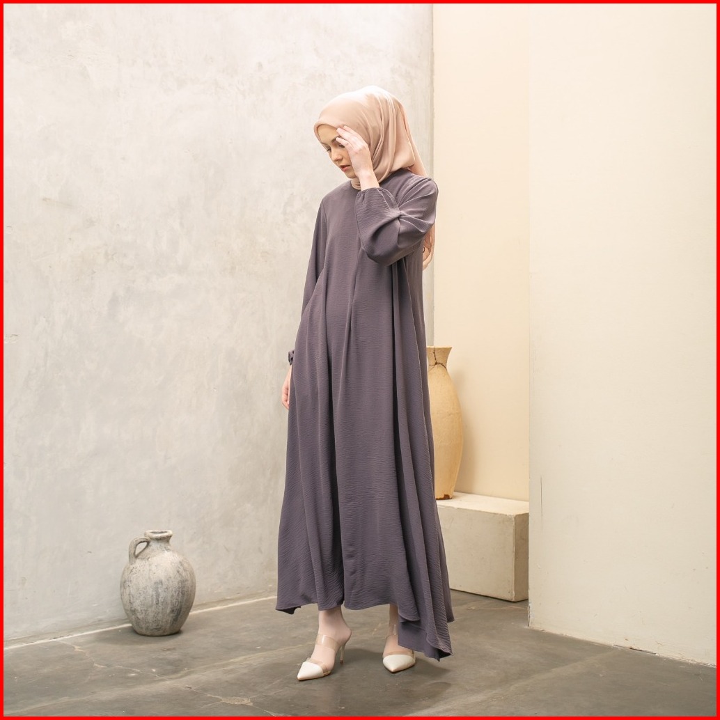 Luma Dawa Khalifah Basic Dress Abaya Gamis Polos Kantong Busui Friendly Crinkle Airflow Umroh Haji