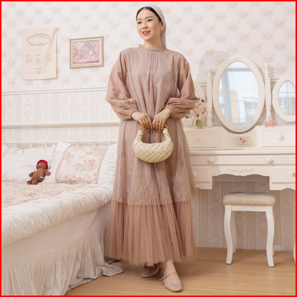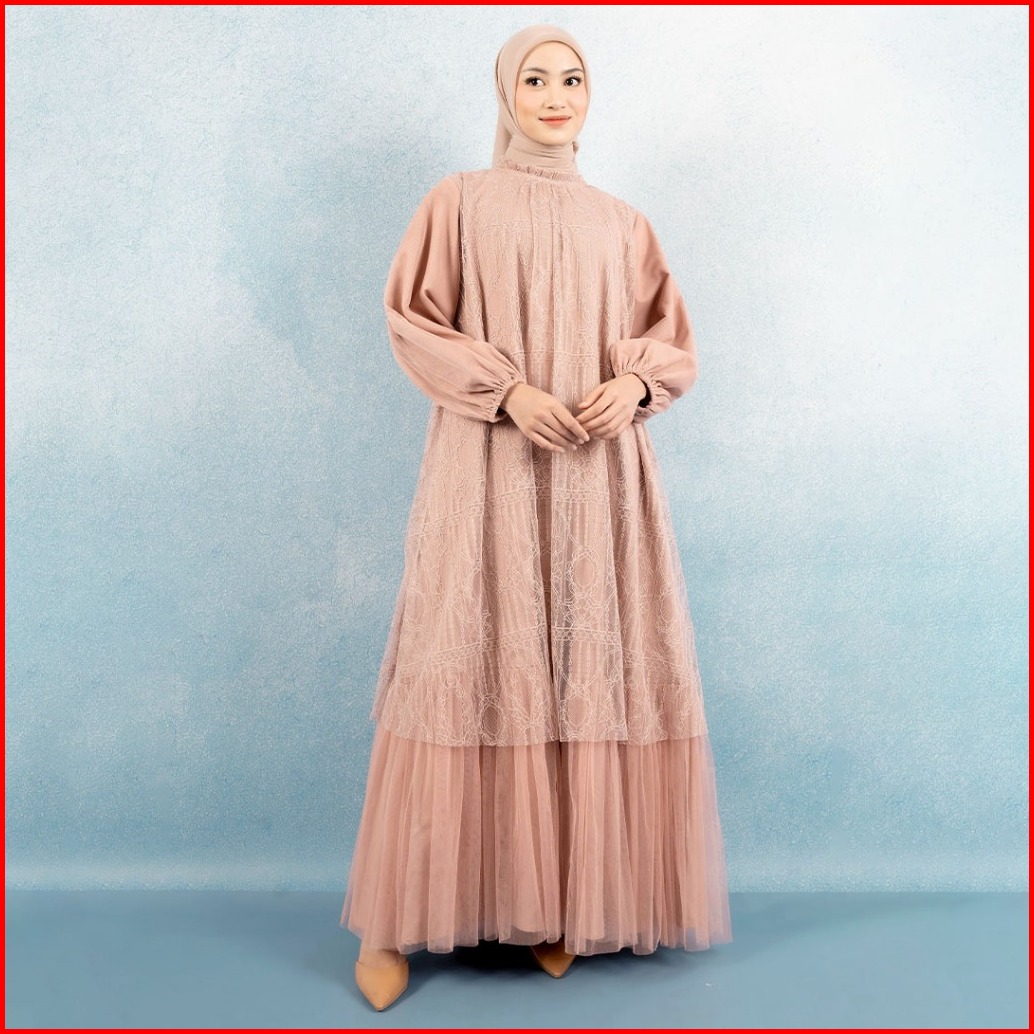 Hijabchic Syahira Mocca Dress - Gaun Brukat Tulle Kondangan Elegan Best Seller