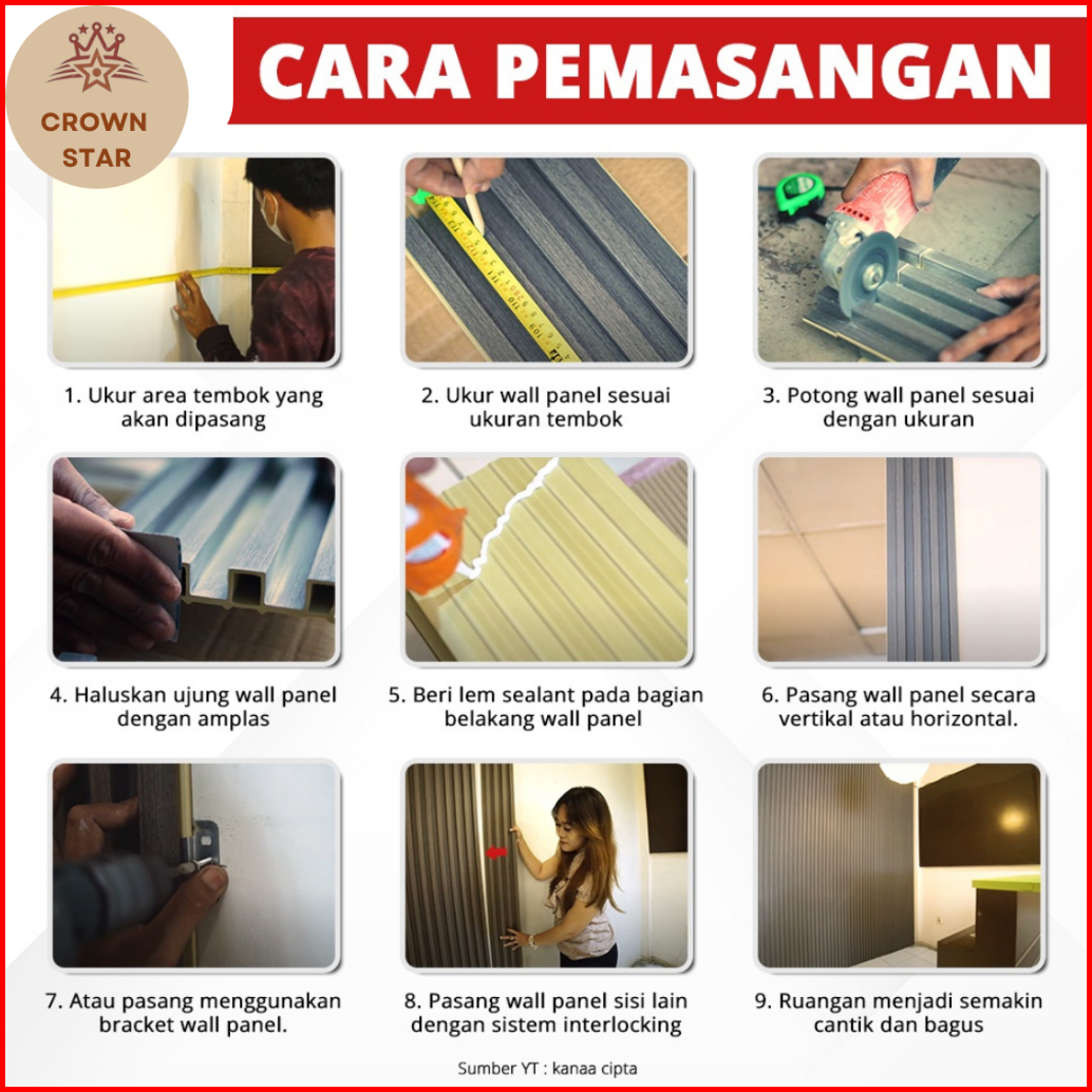 Crown Star - Paket 5 Batang Wpc Wall Panel 1 5meter X 15cm X 18mm Premium Wood Panel Fluted