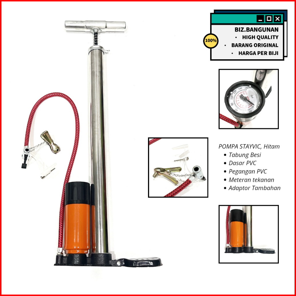 Pompa Angin Tabung Meter Bison Stayvic Ysk Hendso - Kompa Roda Ban Sepeda Motor Bola Mainan Manual