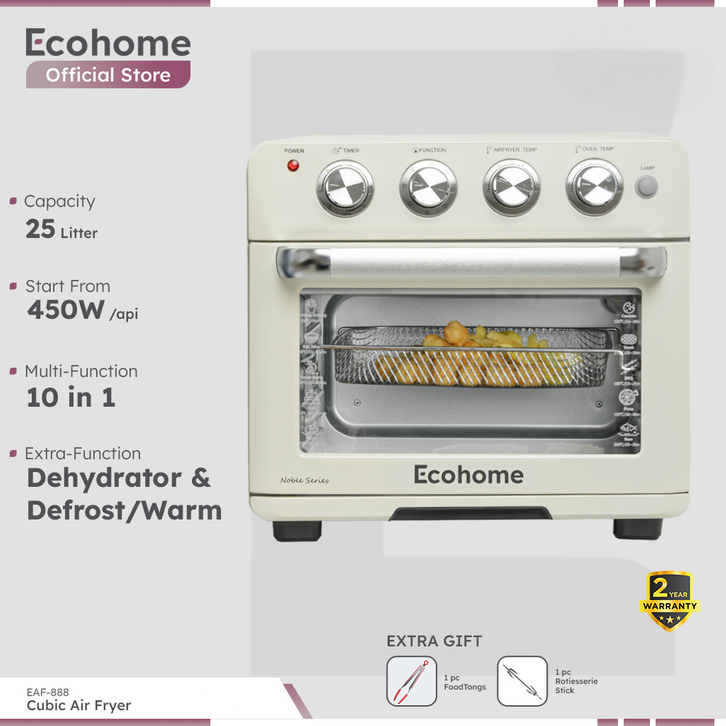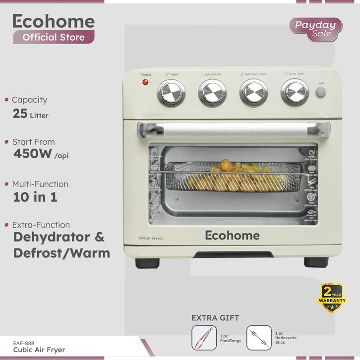 Air Fryer & Oven ECOHOME Cubic EAF888 10 in 1 Function 25L Defrost Warm & Dehydrator