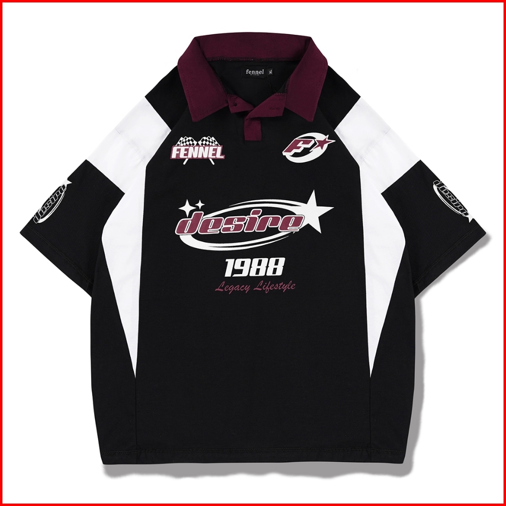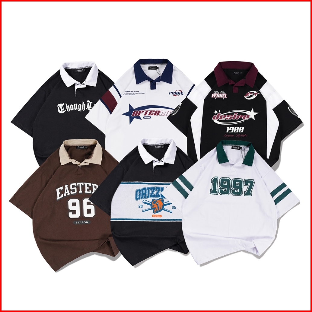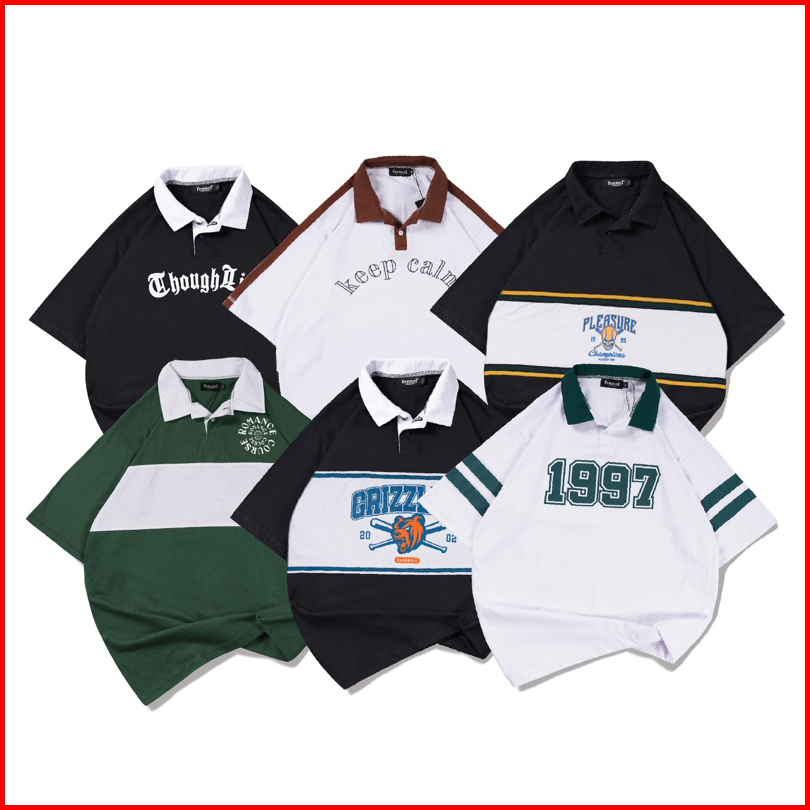 N01304 T-shirt Oversize Rugby Lengan Pendek Motif 1997