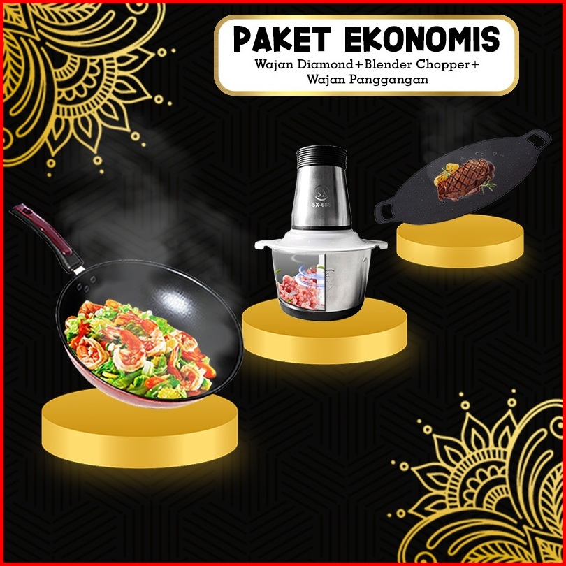 Ss Bundling Super Hemat Ramadhan Wajan Penggorengan 32cm Blender Chopper 2 Liter Wajan Panggang 34cm