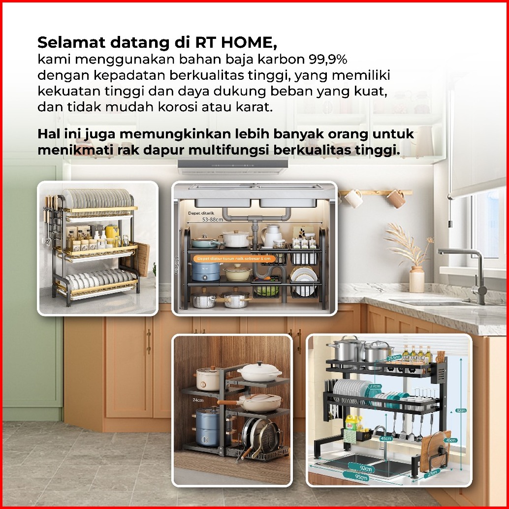 Rt Home Rak Dapur Stainless Rak Wastafel Rak Piring Dan Peralatan Dapur Drain Rack Meja