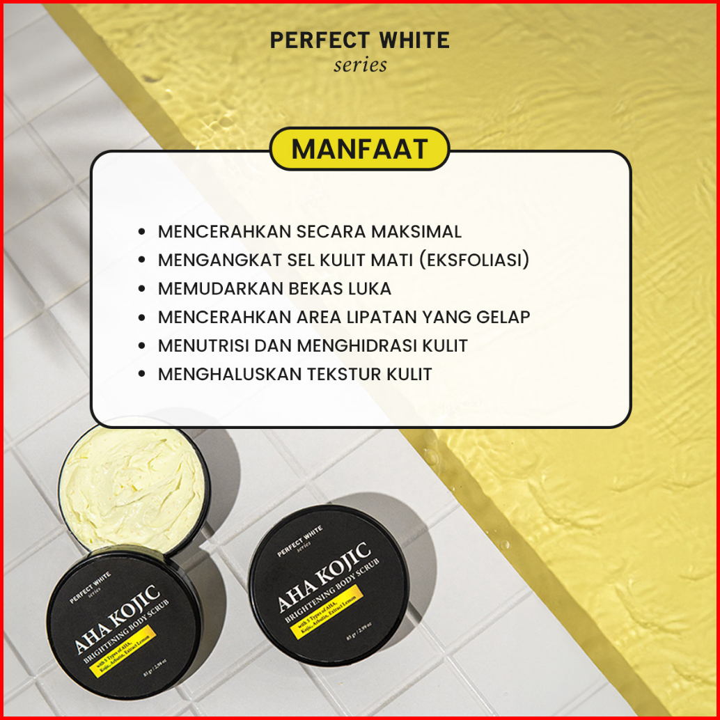Perfect White Aha Kojic Brightening Body Scrub Lulur Pemutih Badan Whitening Booster