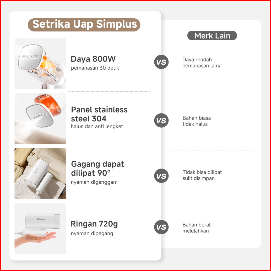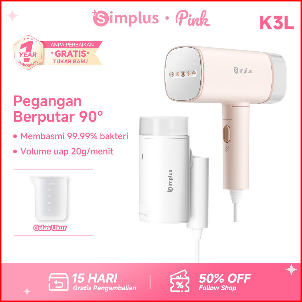 Simplus Pink Low Watt Setrika Uap Genggam Kapasitas 180ml Portable Dapat Dilipat