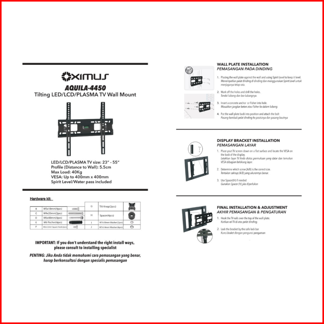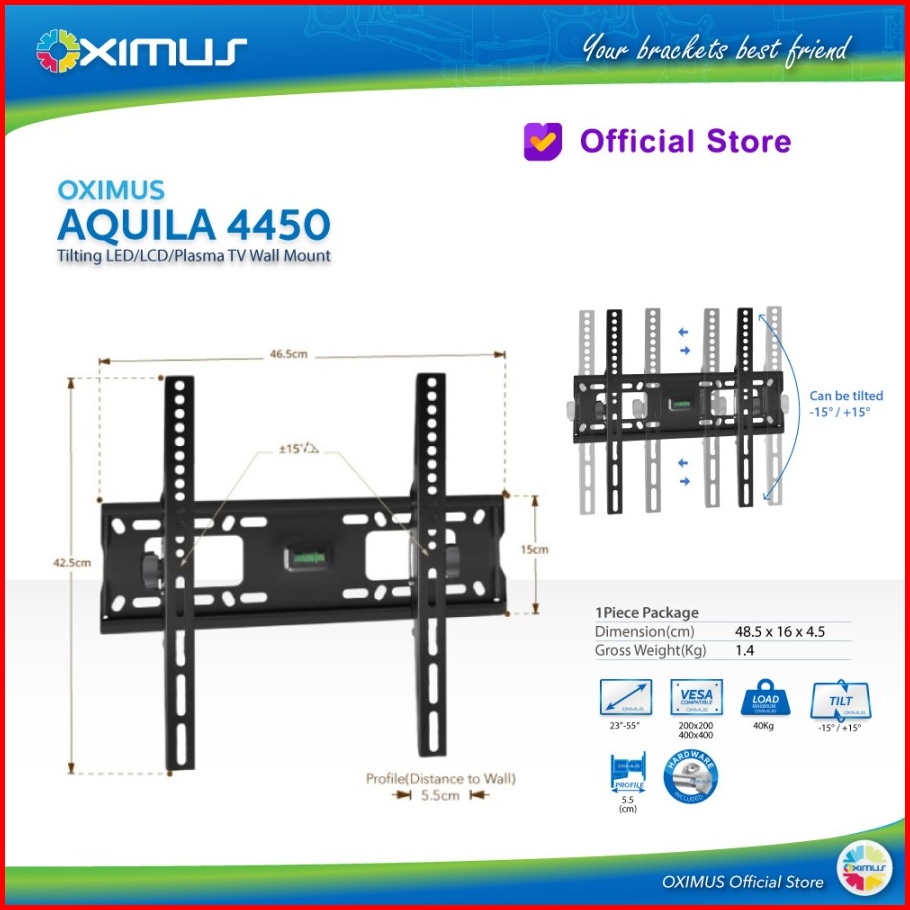 Bracket Tv Tilt Lcd Led Tv 23 - 55 Oximus Aquila 4450