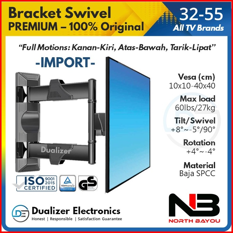 Bracket Tv Swivel Swifel Lengan Smart Tv Led 32 40 42 43 49 50 55 Inch Premium Nb P4