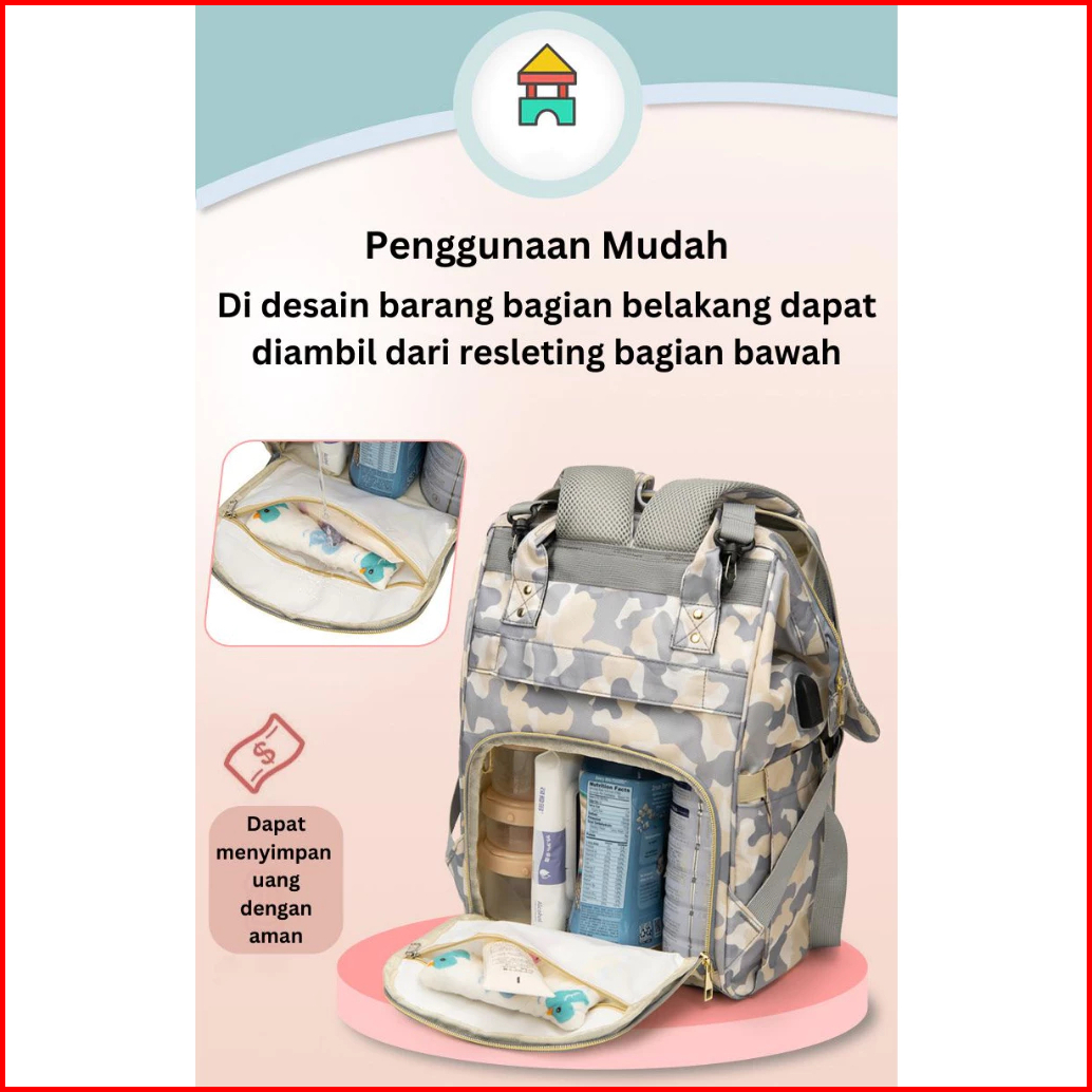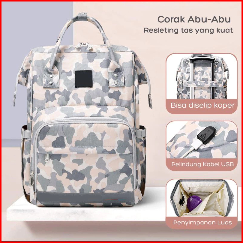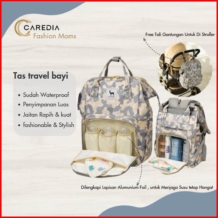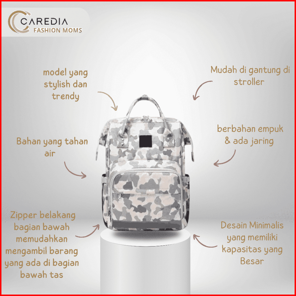 Caredia - Tas Bayi Multifungsi Ransel Diaper Bag Backpack Water Proof Motif Army Kapasitas Penyimpanan Luas Desaign Styl