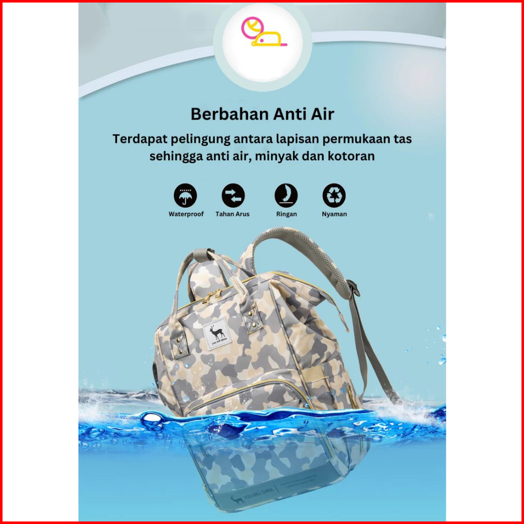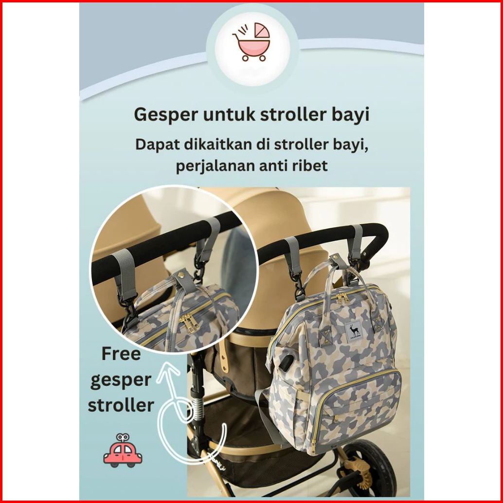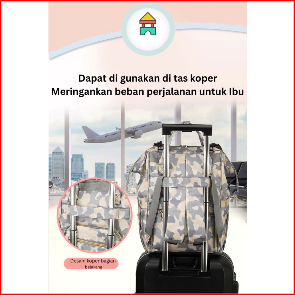 Caredia - Tas Bayi Multifungsi Ransel Diaper Bag Backpack Water Proof Motif Army Kapasitas Penyimpanan Luas Desaign Styl