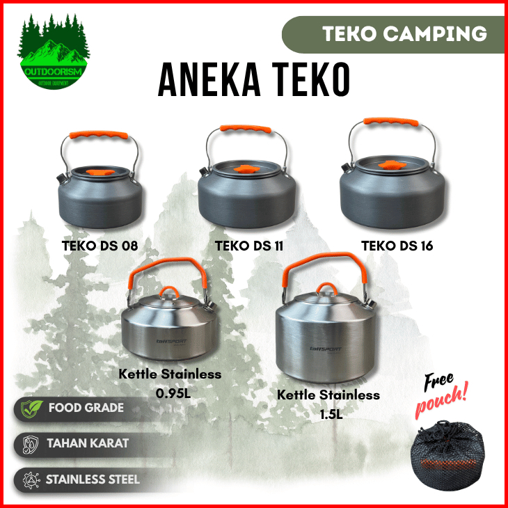 Taffsport Aneka Teko Camping Outdoor Alat Masak Hiking Tea Pot Kettle Ceret Piknik