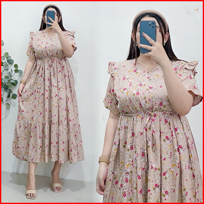 Missdaster - Kejora Dress Ruffle Rayon Motif Busui Dan Bumil