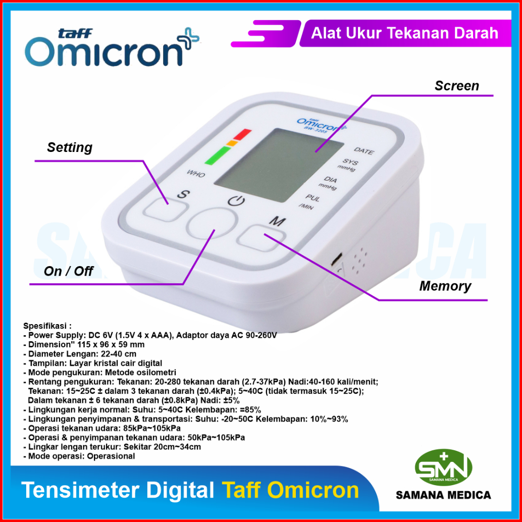 Tensimeter Digital Dengan Suara Bahasa Indonesia Taff Omicron Bw-3205 Sphygmomanometer Pengukur Tekanan Darah - Free Bat