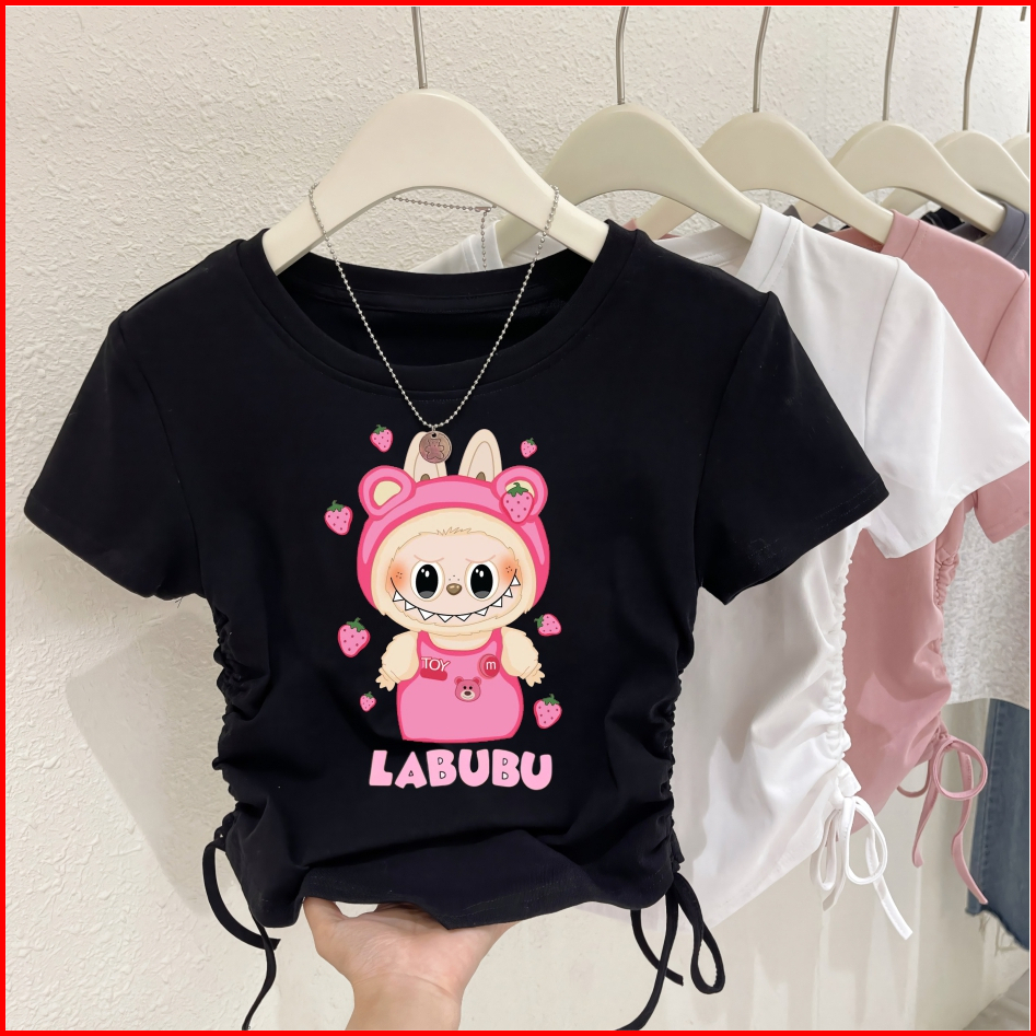 Baju Kaos Labubu Anak Perempuan Model Serut Usia 1 2 3 4 5 6 7 8 9 10 11 12 Tahun