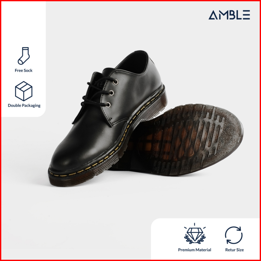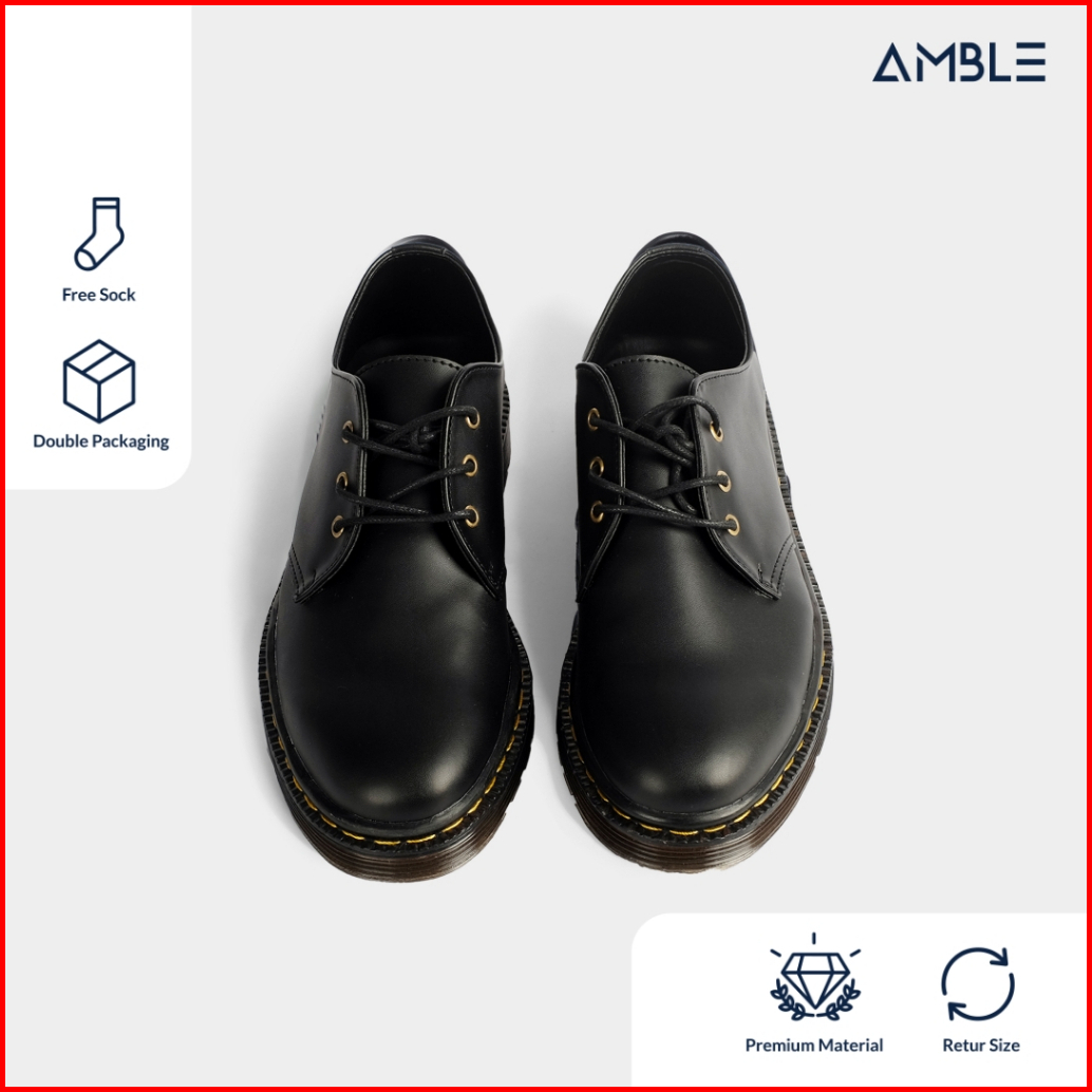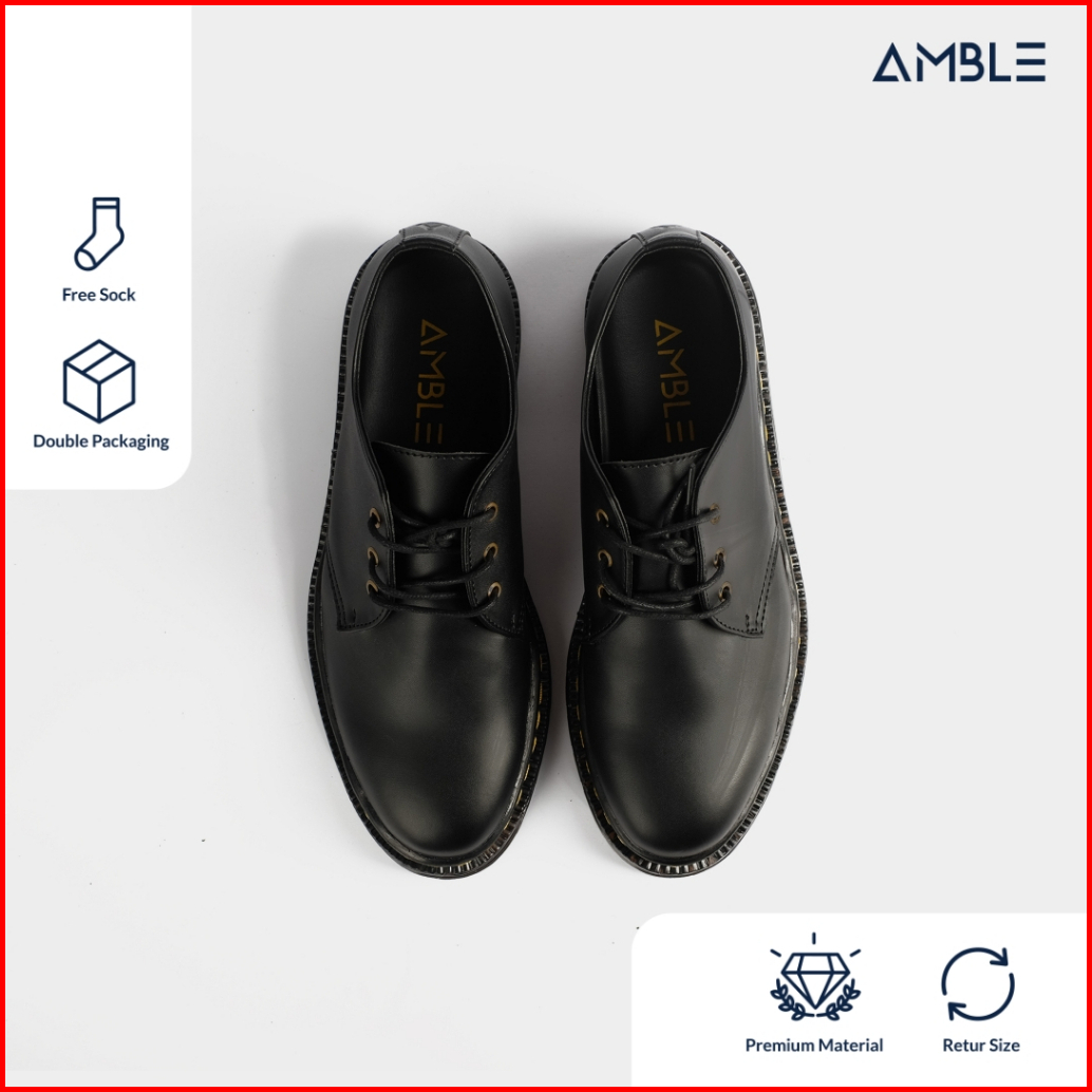 Sepatu Boots Pria Amble Jamie Vegan Black Derby Hitam