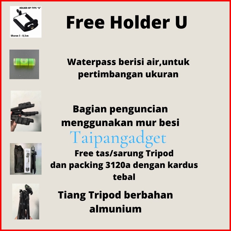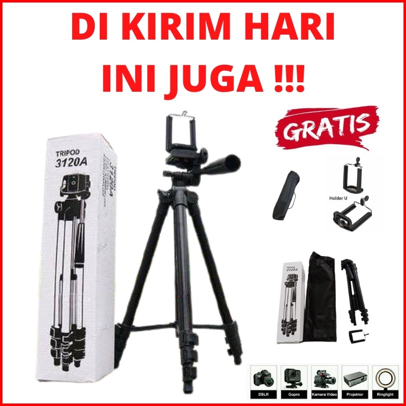 Tripod 3120a Tripod Hp Dan Kamera Universal - Free Holder U Dudukan Hp Dan Tas Tripod 3120a Hitam Tripod 1 Meter