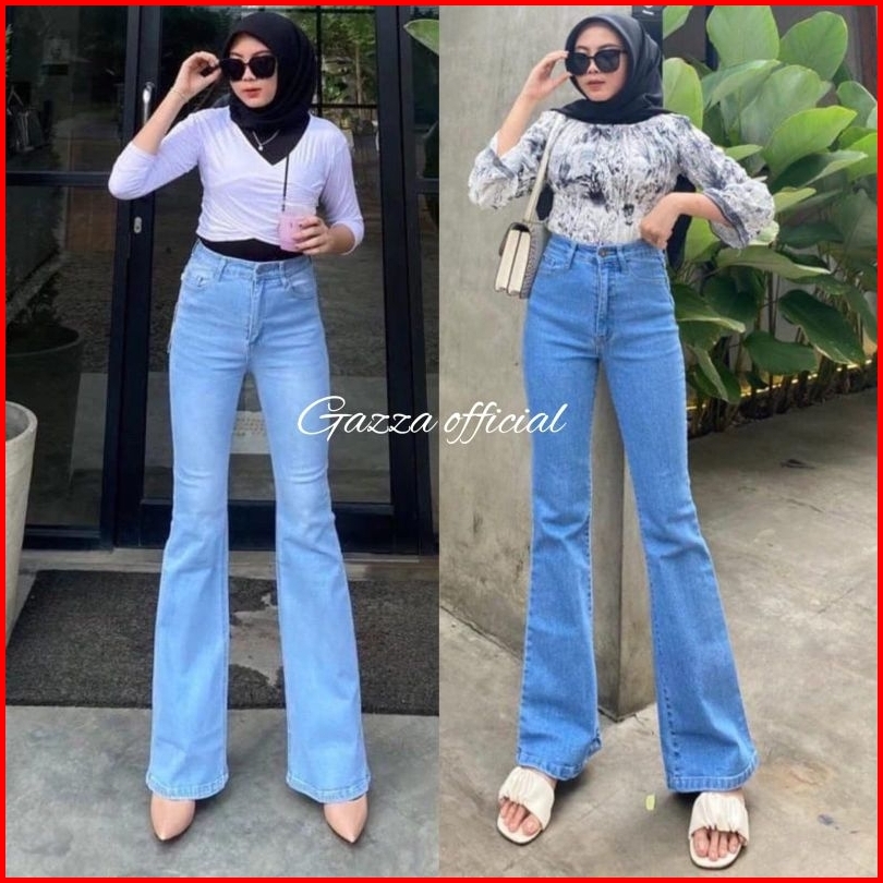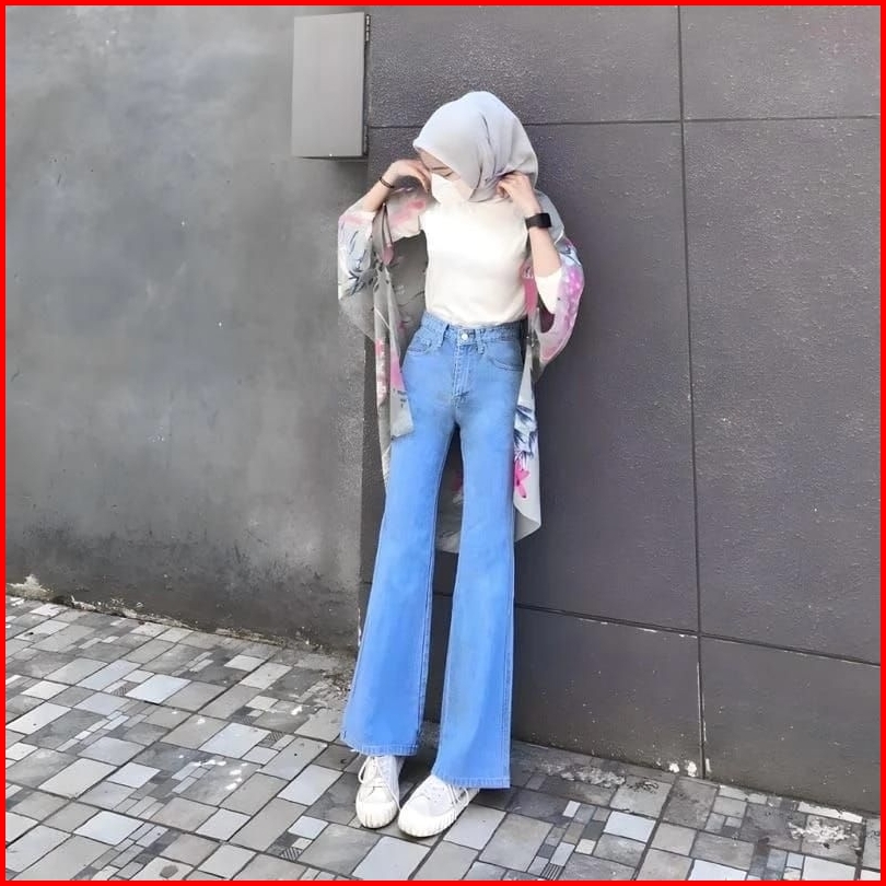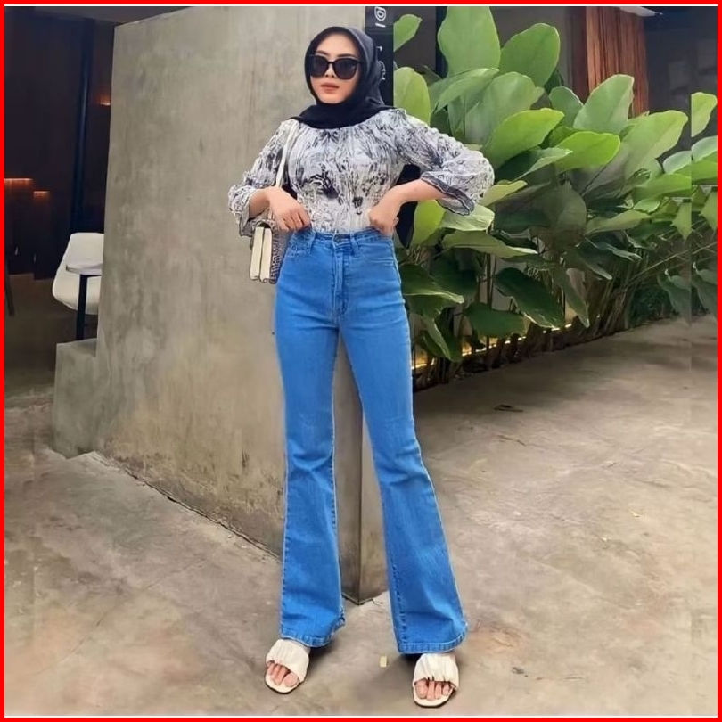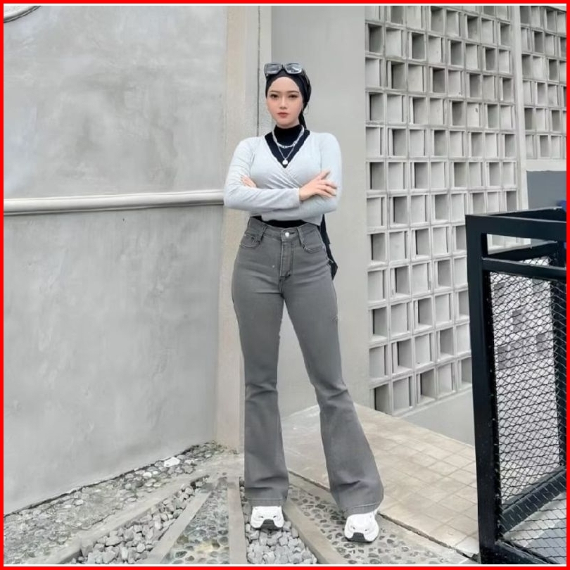 Celana Jeans Cutbray Wanita Highwaist Cutbray Flared Streacht Kekinian