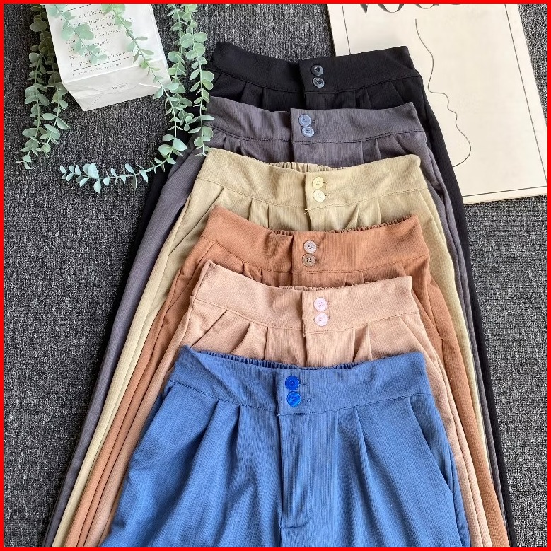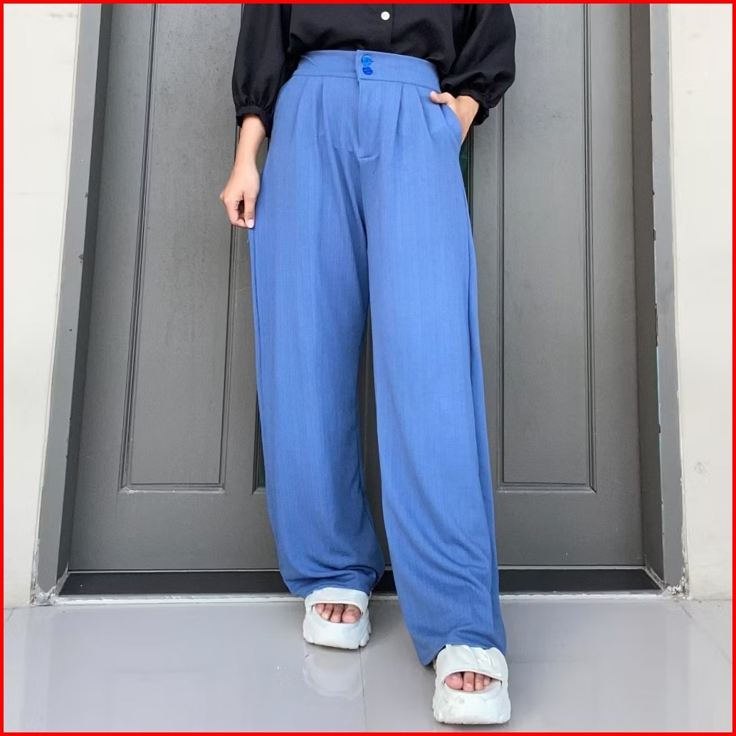 Elegant - Jennie Knit Pants Celana Kulot Higwaist Knit Kancing Wanita Terbaru
