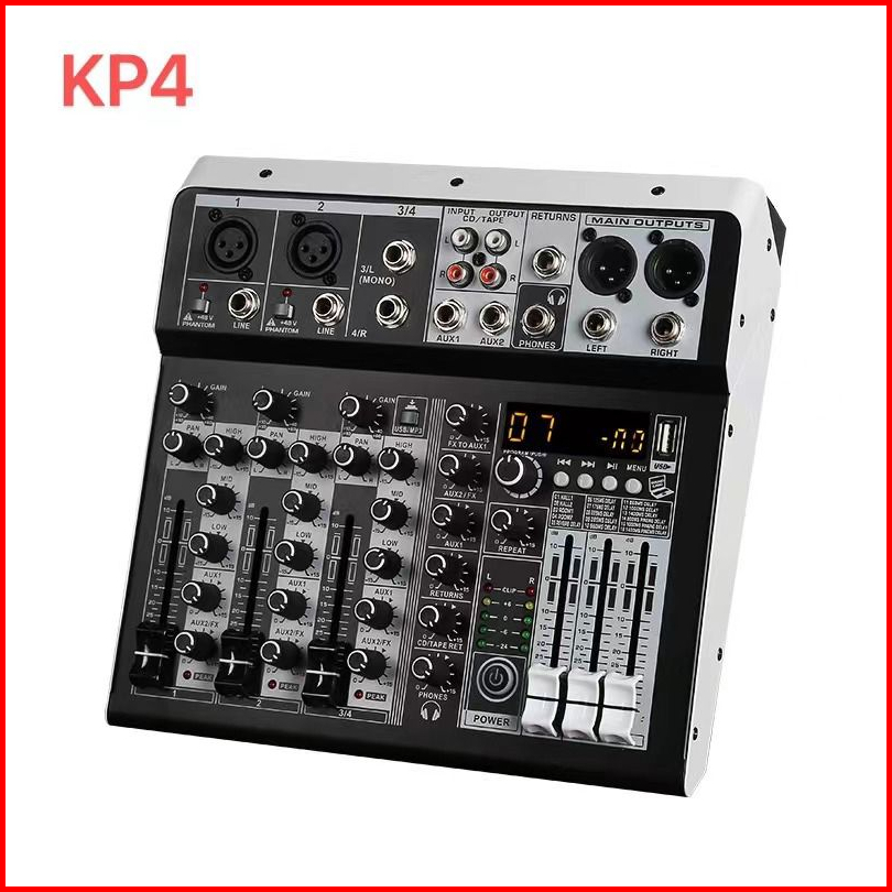 Kp4 Audio Mixer Professional 4 Channel Mixer Support Bluetooth Usb Mp3 Playback Ktv Outdoor Performance Party Use