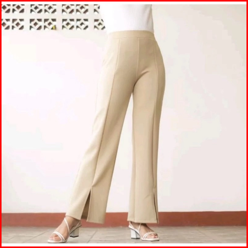 Celana Wanita Cutbray Premium Panjang Pants Highwaist Belah Bawah Kekinian- Celana Cutbray Pants Scuba Bawahan Cutbray W