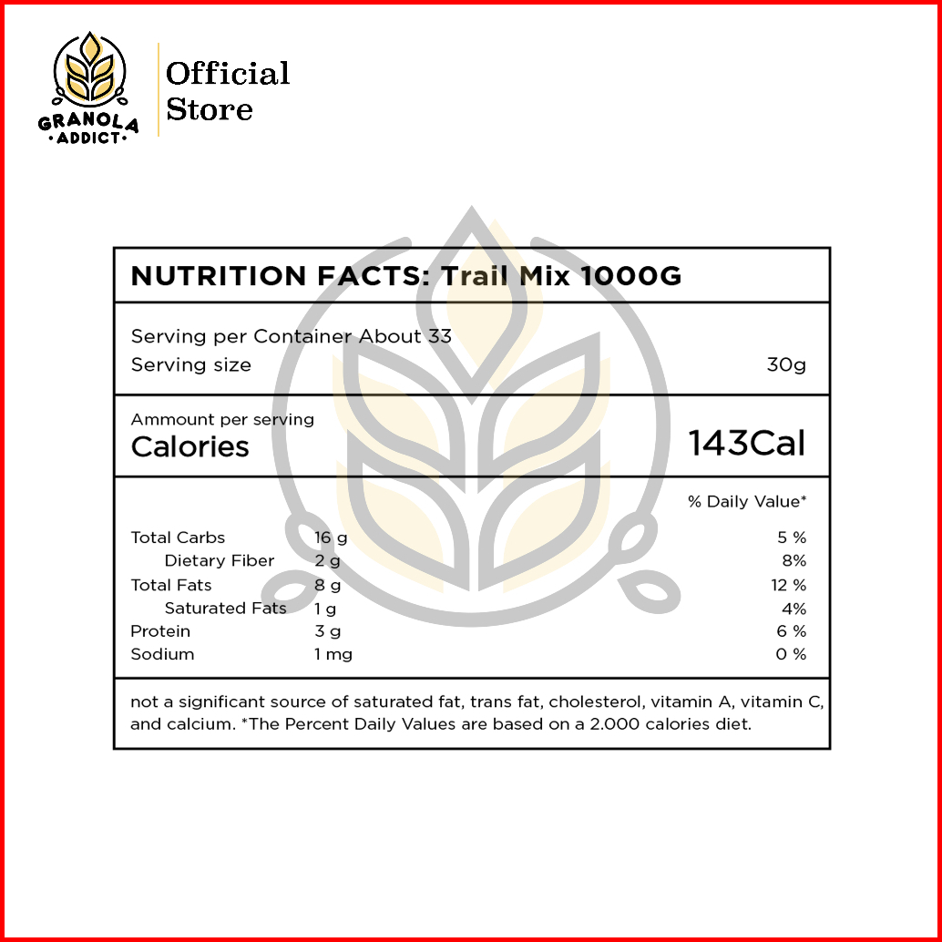 Granola Addict - Trail Mix Sunflower Pumpkin Seeds Almond Raisin Cranberry 1000g