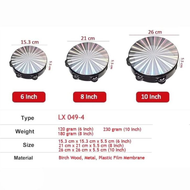 Tamborine Gereja Hologram 8 inch dan 10 inch Tamborin IMPORT Kincrik Rebana