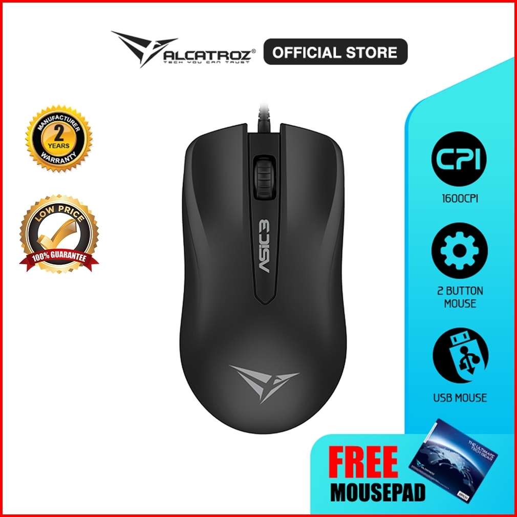 Mouse Kabel Alcatroz Asic 3 Wired Usb Mouse 1600 Cpi Ergonomic Design With High Resolution Optical Mouse
