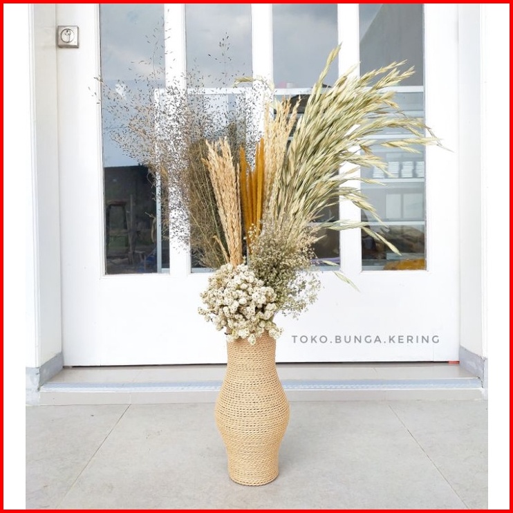 Paket Bunga Kering Rustic Vas Guci 25cm