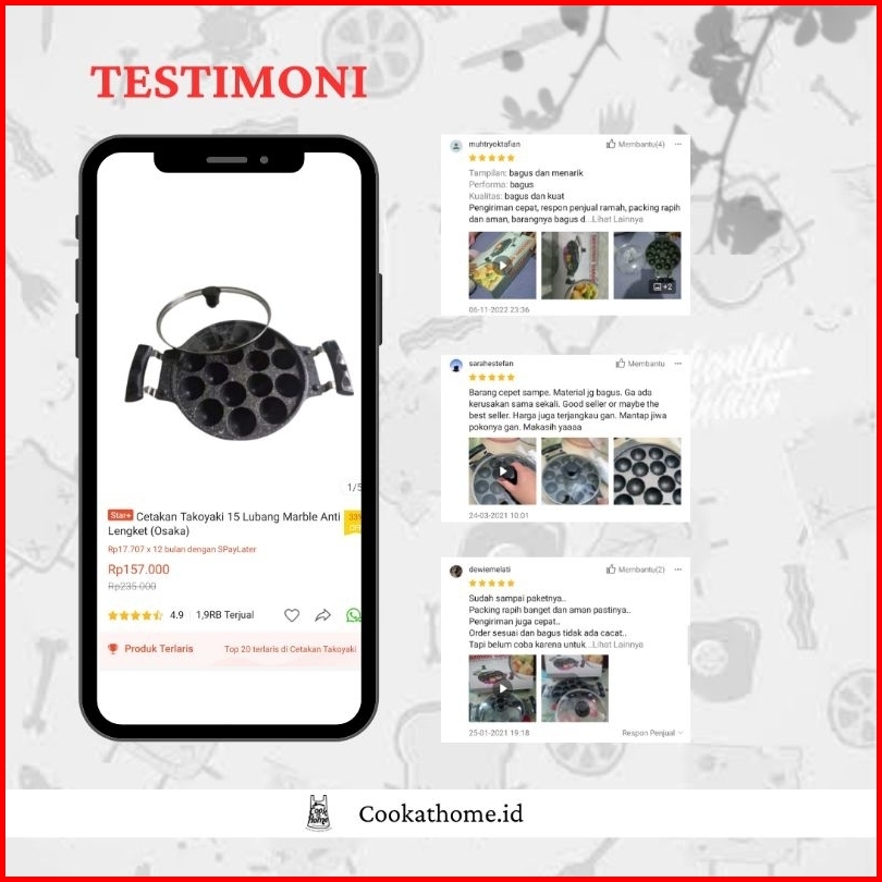 Cetakan Takoyaki 15 Lubang Marble Anti Lengket Osaka