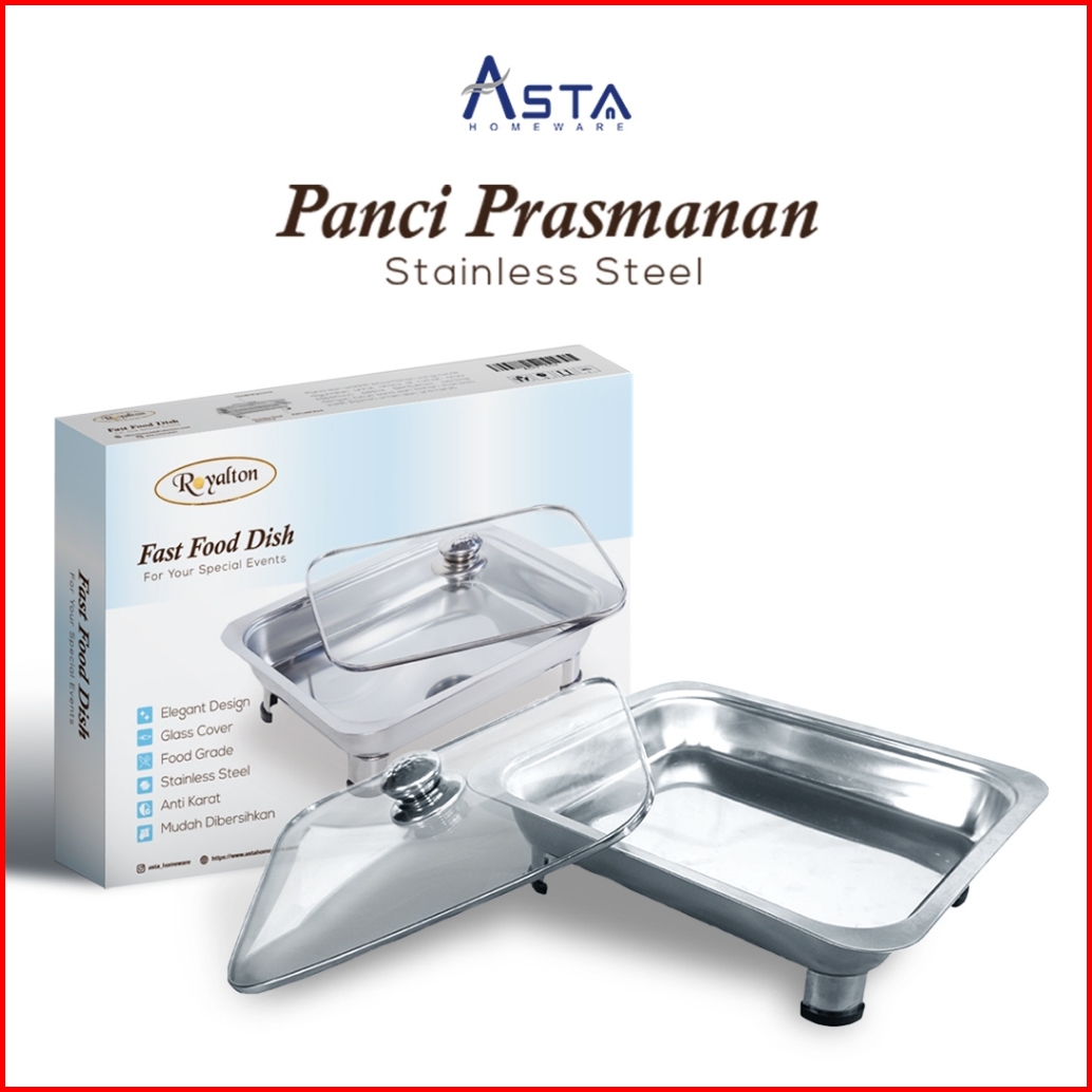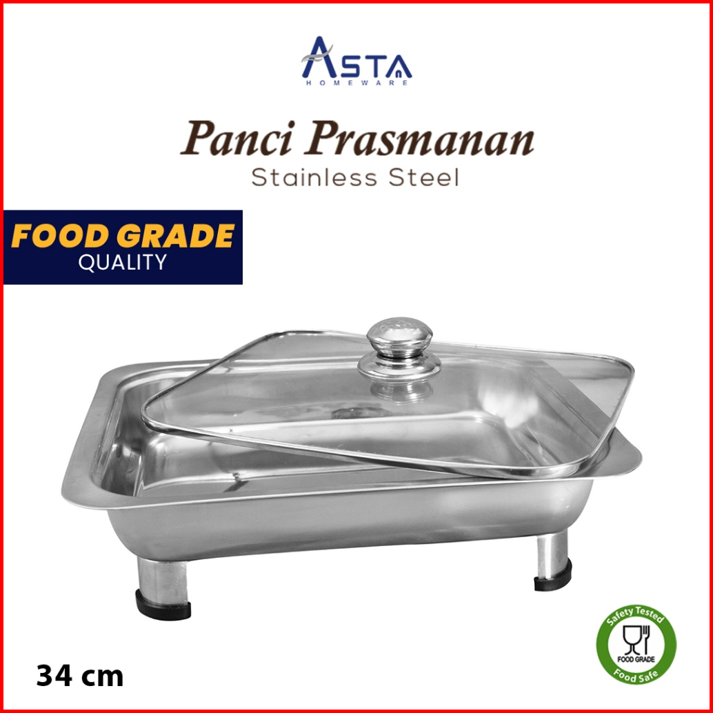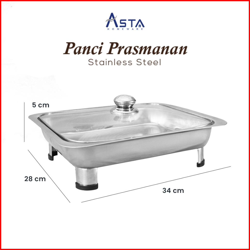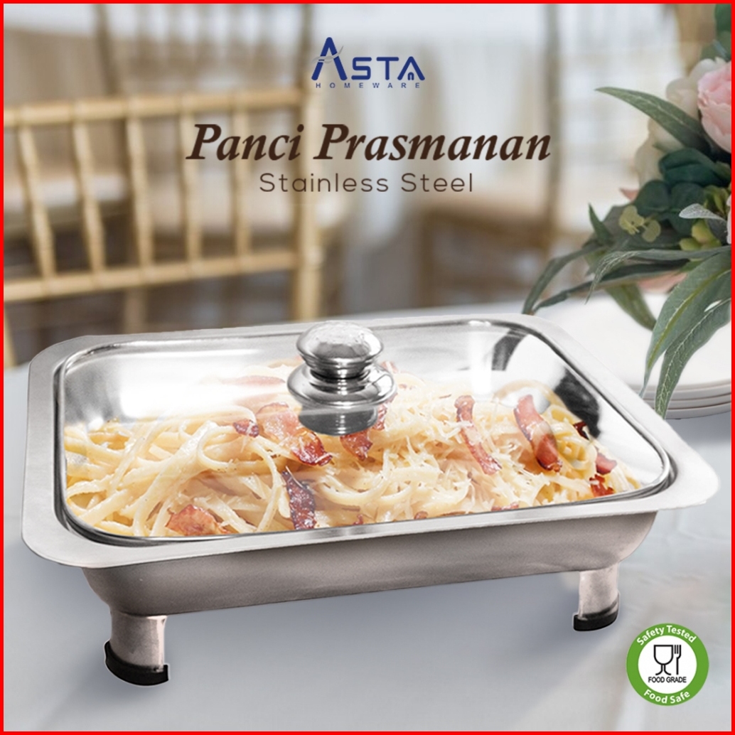 Asta Wadah Makanan Stainless Panci Prasmanan Chafing Dish Tutup Kaca Food Grade