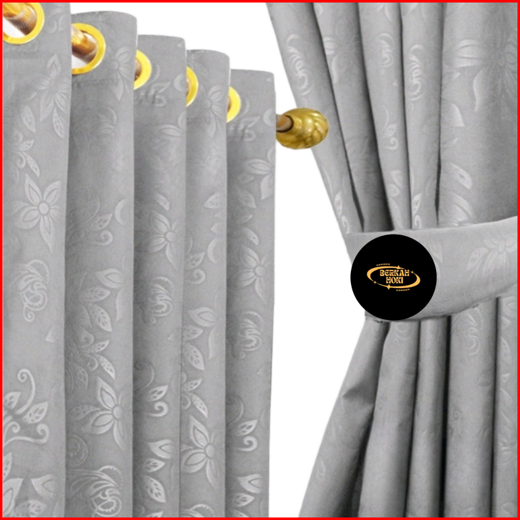 Tirai Pintu Dan Gorden Jendela Polos Embos Smokering 12 Lubang Korden Abu Muda Panjang
