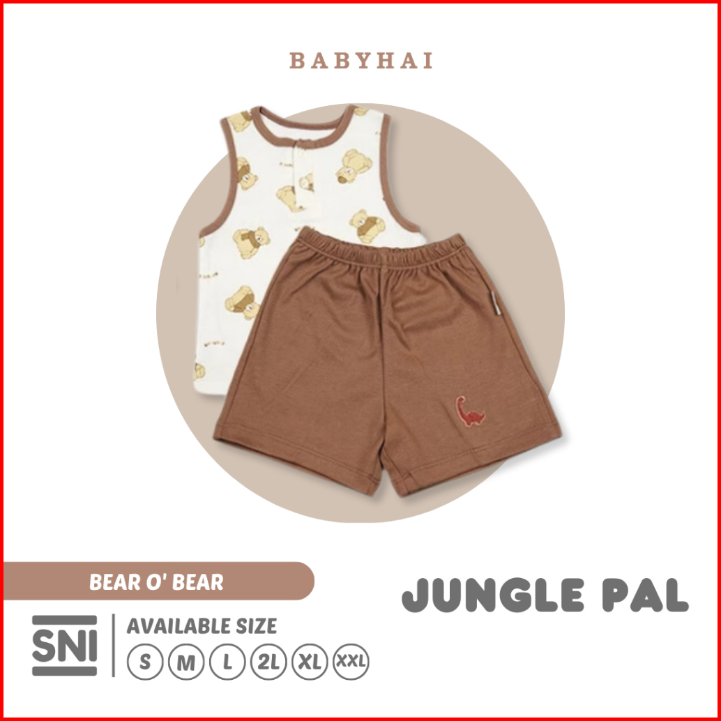 Baby Hai Jungle Pal - Setelan Kutung Kancing Depan Baju Kutung Celana Pendek Bayi