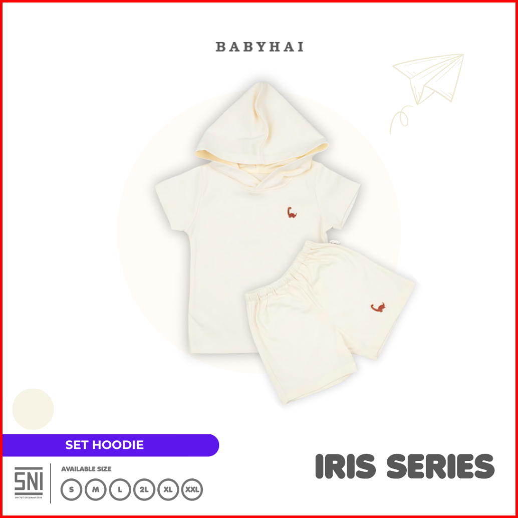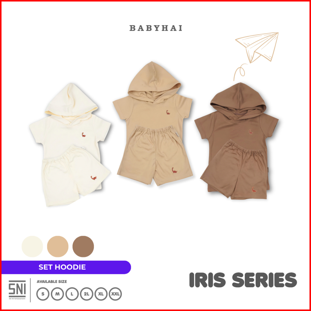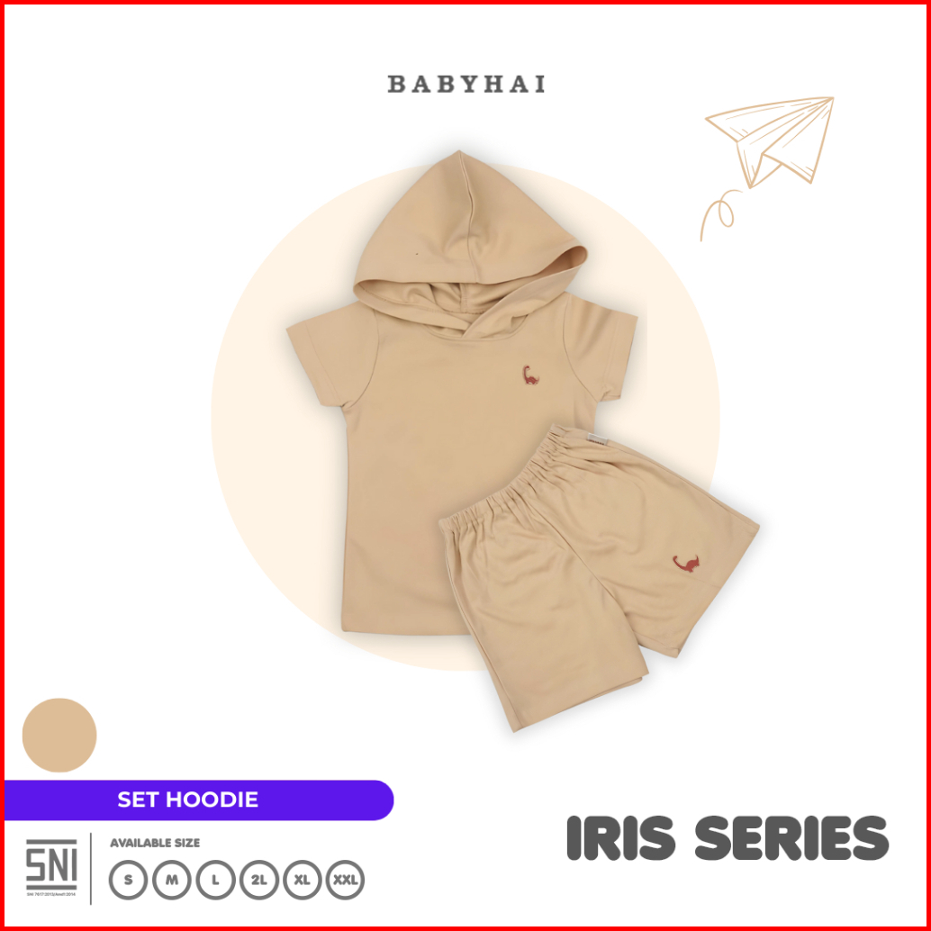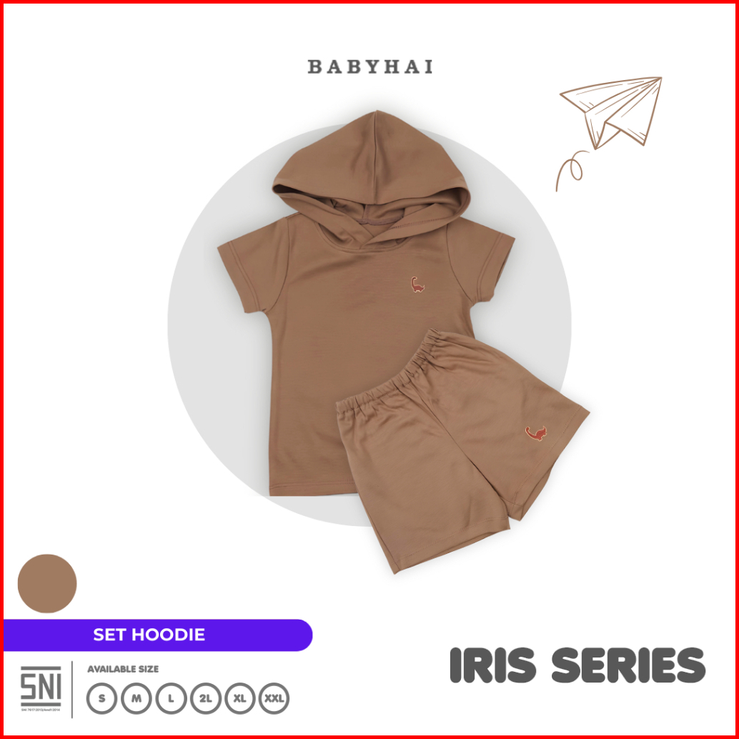 Baby Hai Iris Set - Setelan Hoodie Baju Pendek Celana Pendek - Seri Coklat