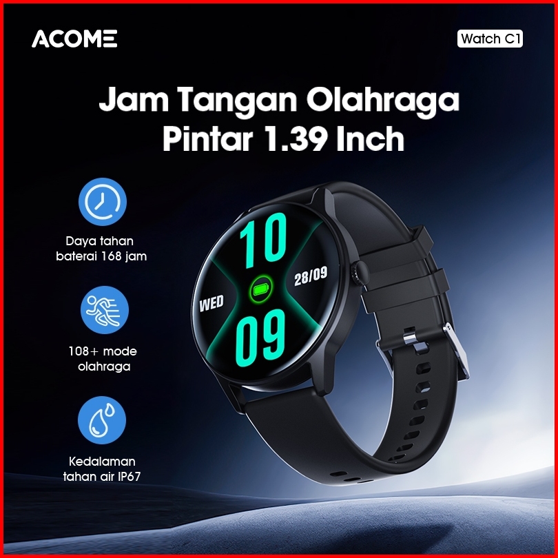 Acome Sport Smart Watch Tahan Air Bluetooth Blood Oxygen Monitoring Watch C1 Garansi Resmi 1 Tahun