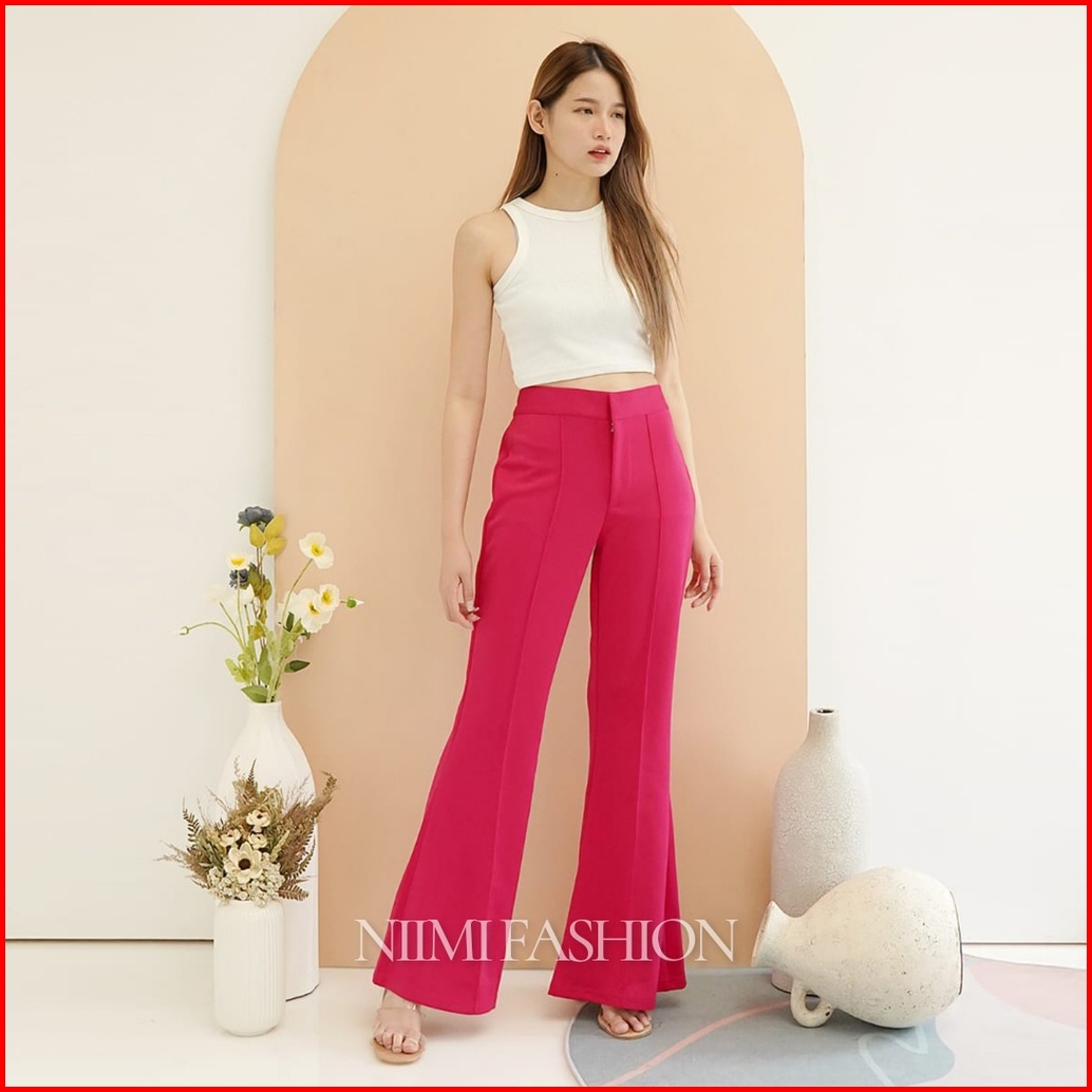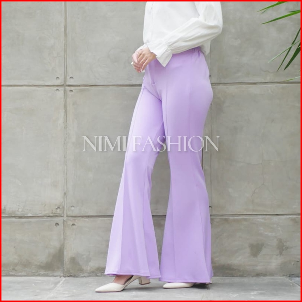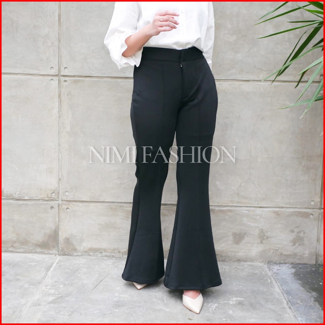 Nimi - Dyara Pants Celana Cutbray Scuba Highwaist Premium Wanita Wide Leg Scuba Pants