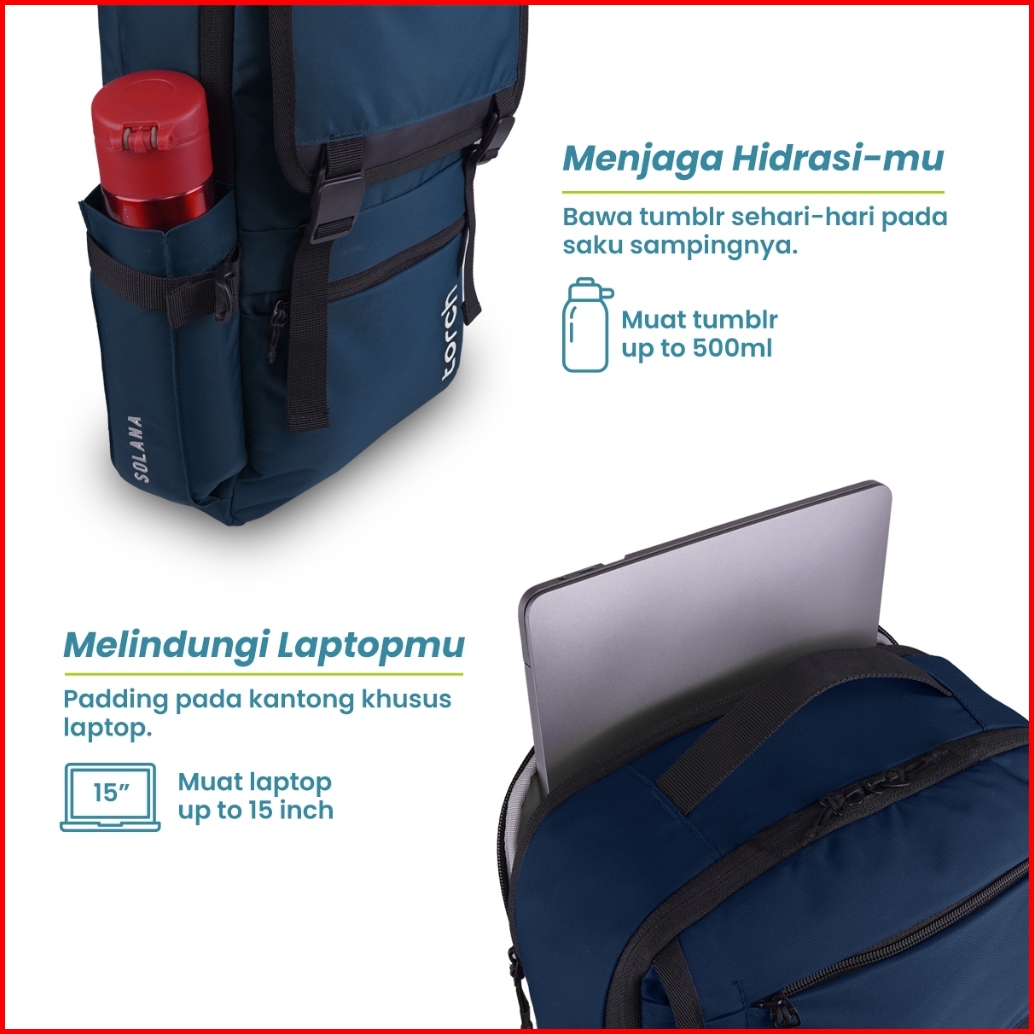 Torch Solana Tas Totebag Ransel Punggung Sekolah Kerja Jinjing Laptop Pria Wanita Tahan Air 19 Liter - Backpack Water Re