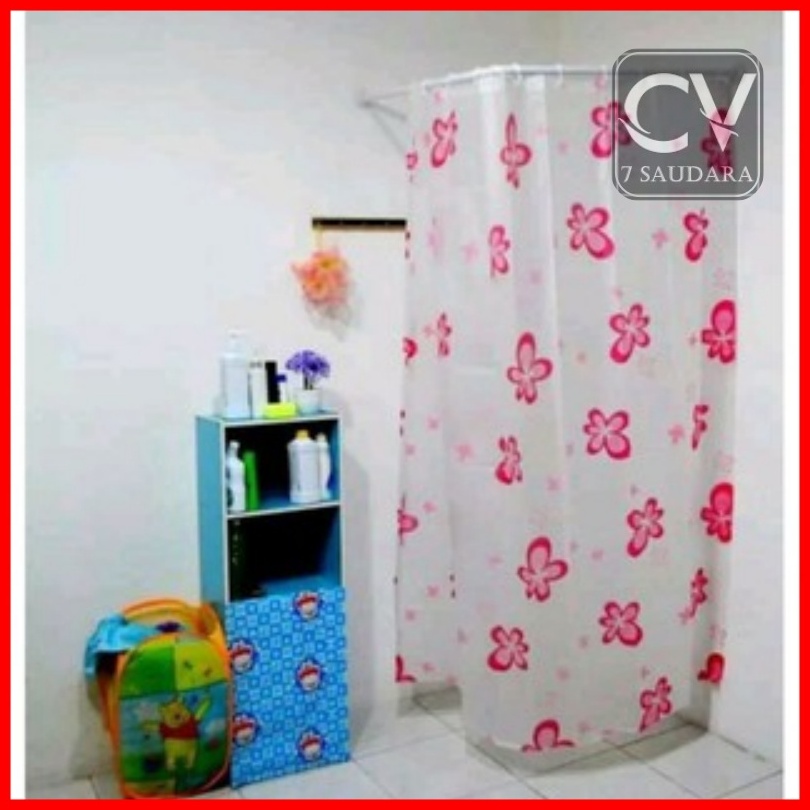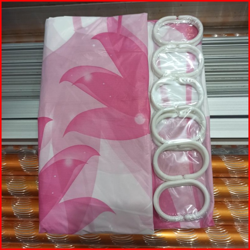 Gorden Korden Tirai Kamar Mandi Shower Hordeng Curtain Plastik Siap Pasang Lengkap Sama Ring Pengait Uk 180x180cm Murah