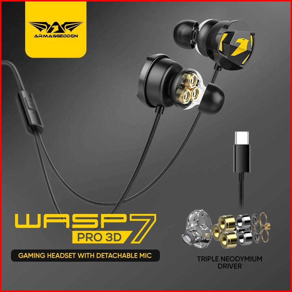 Armaggeddon Wasp-7 Pro 3d Gaming Earphones With Triple Neodymium Driver And Mic - 1 Tahun Garansi