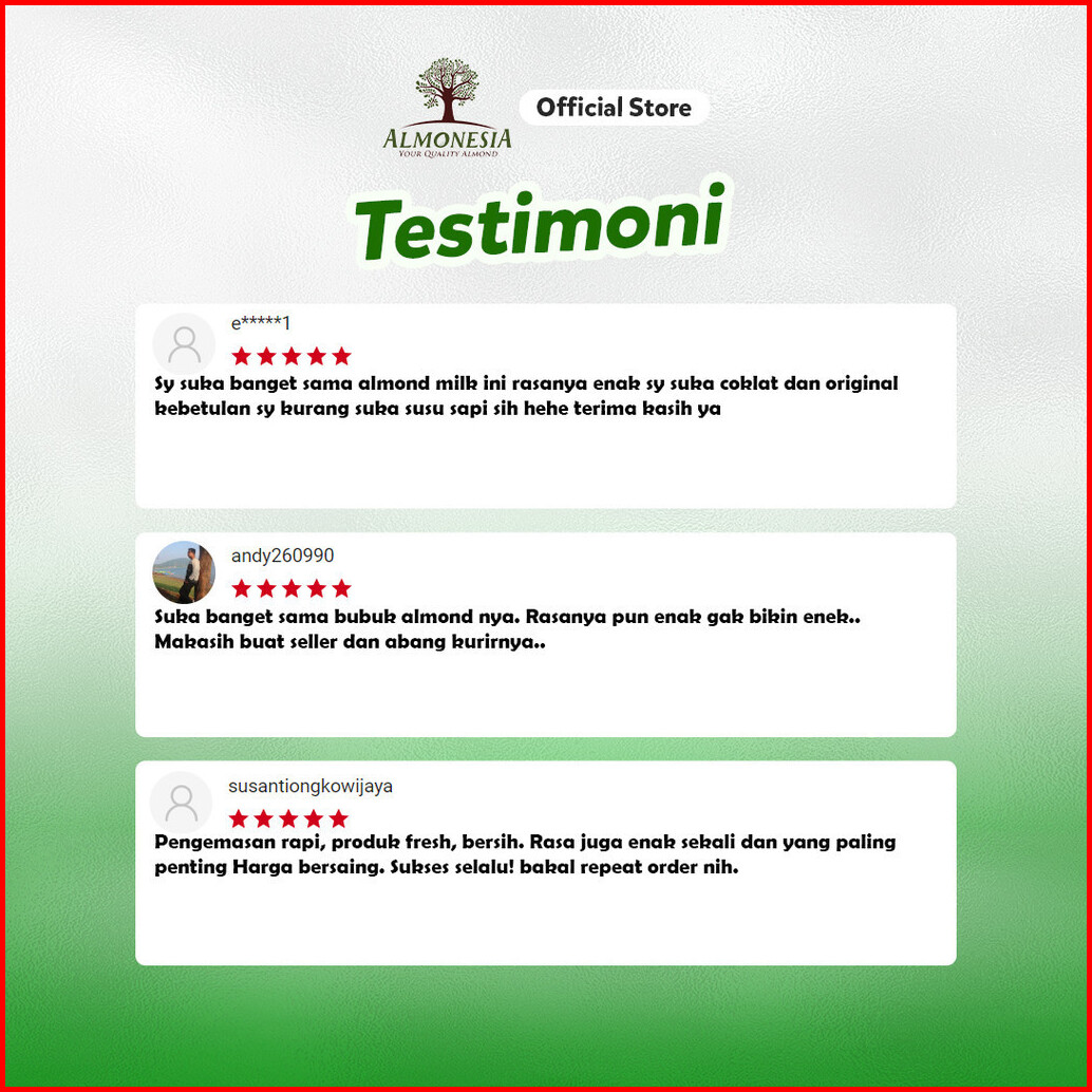 Almonesia - Almond Milk Susu Almond Organik Non Dairy 250gr Busui Asi Booster Asi Pelancar Asi Diet