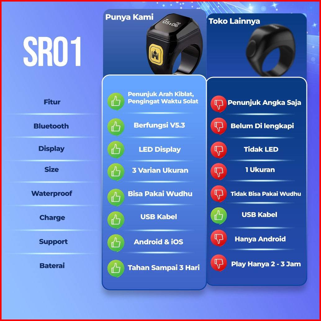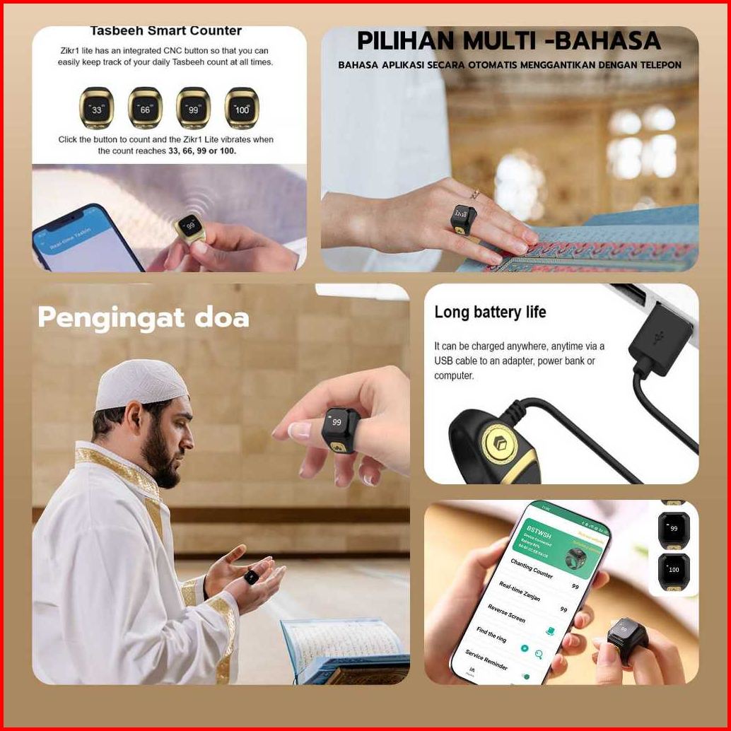 Jovitech Cincin Tasbih Digital Smart Zikr Ring Led Display Bluetooth Tasbeeh Counter Tahan Air - Sr01