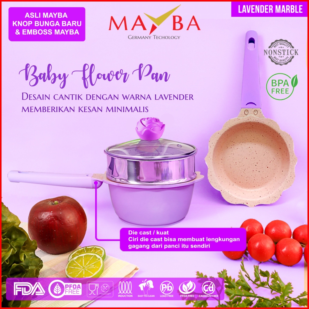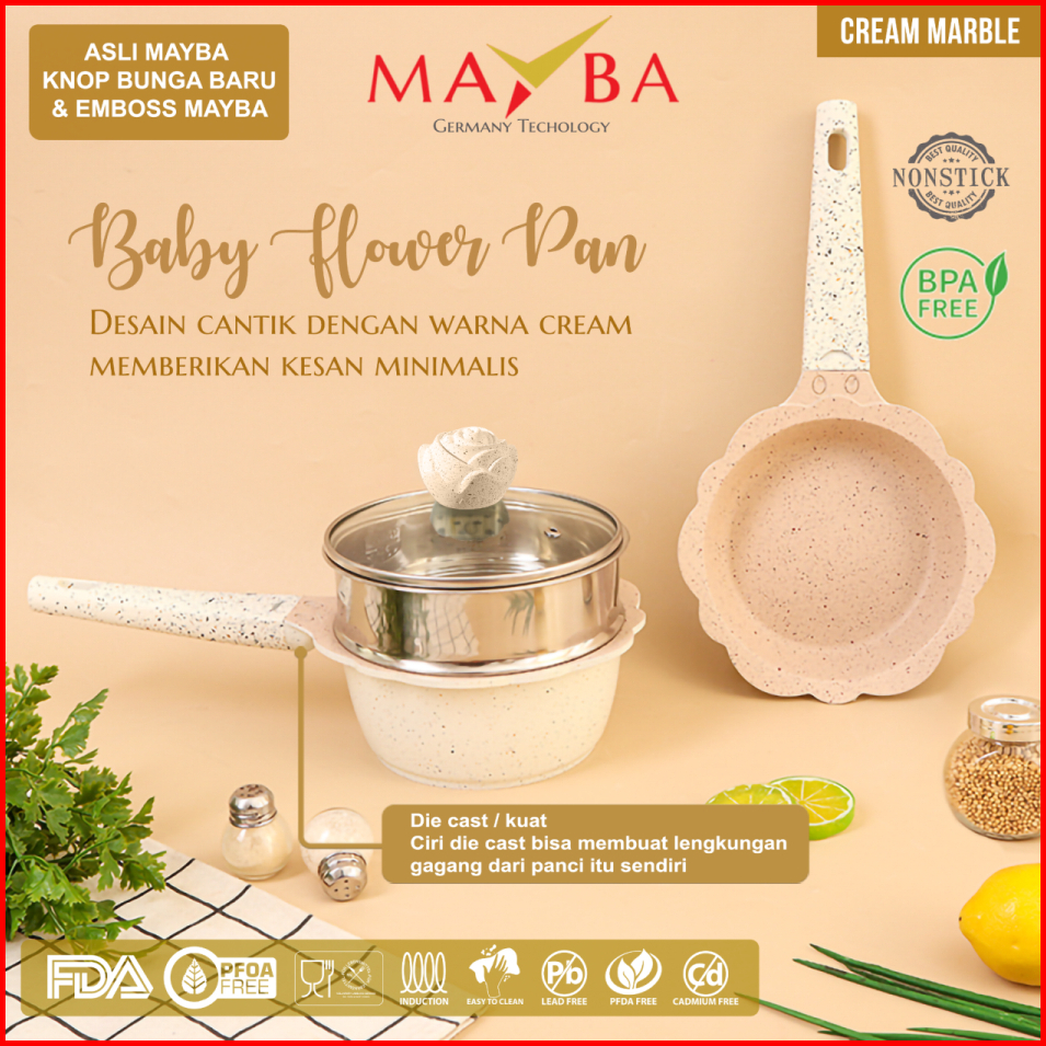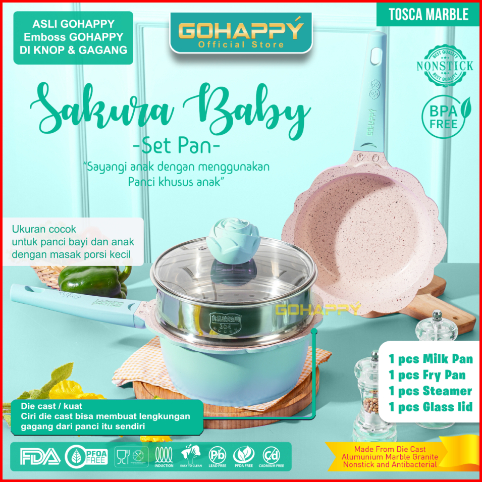 Superprime - Panci Mpasi Lengkap Asli Go Happy Fry Pan Milk Pan Panci Susu Bayi Flower Dengan Steamer Dan Tutup Kaca