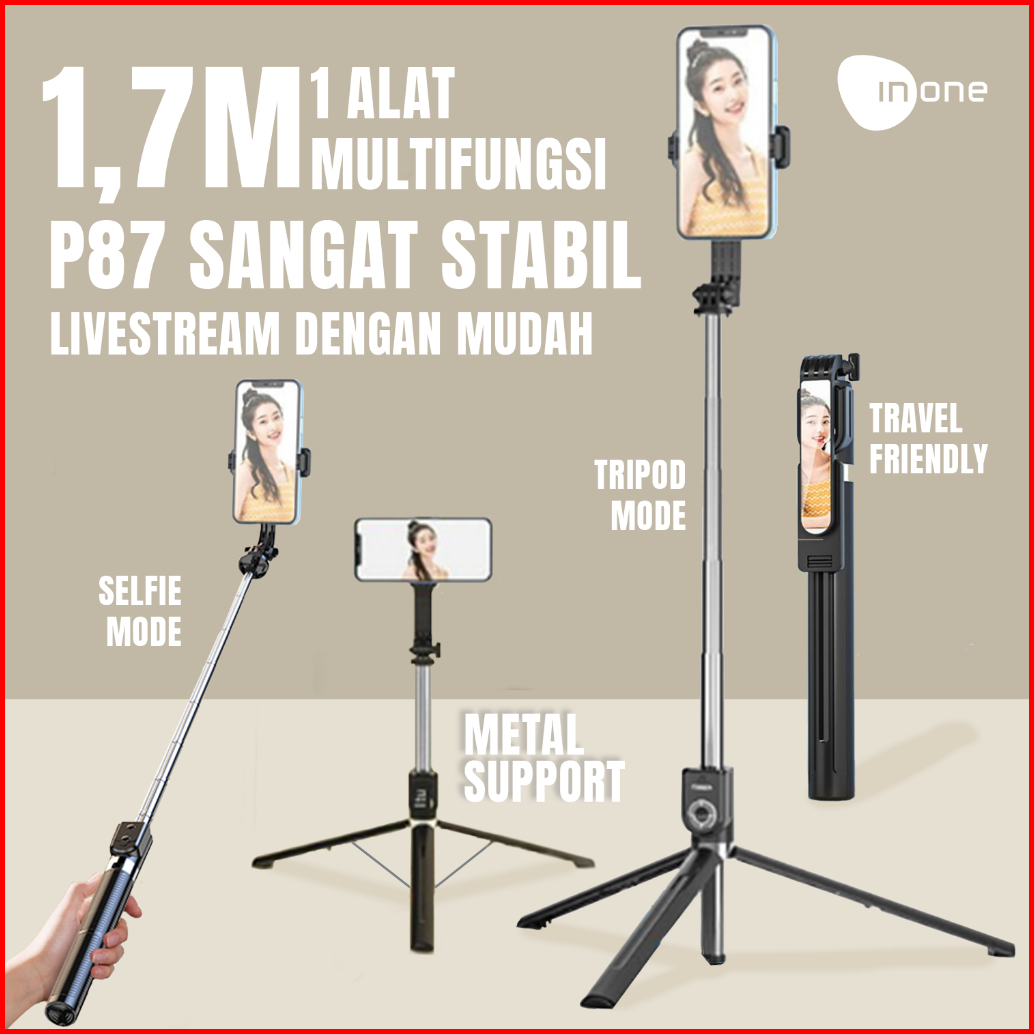 Inone Tongsis Tripod Kokoh Panjang 1 7 Meter Remote P87 R1l Kompatibel Ios Android