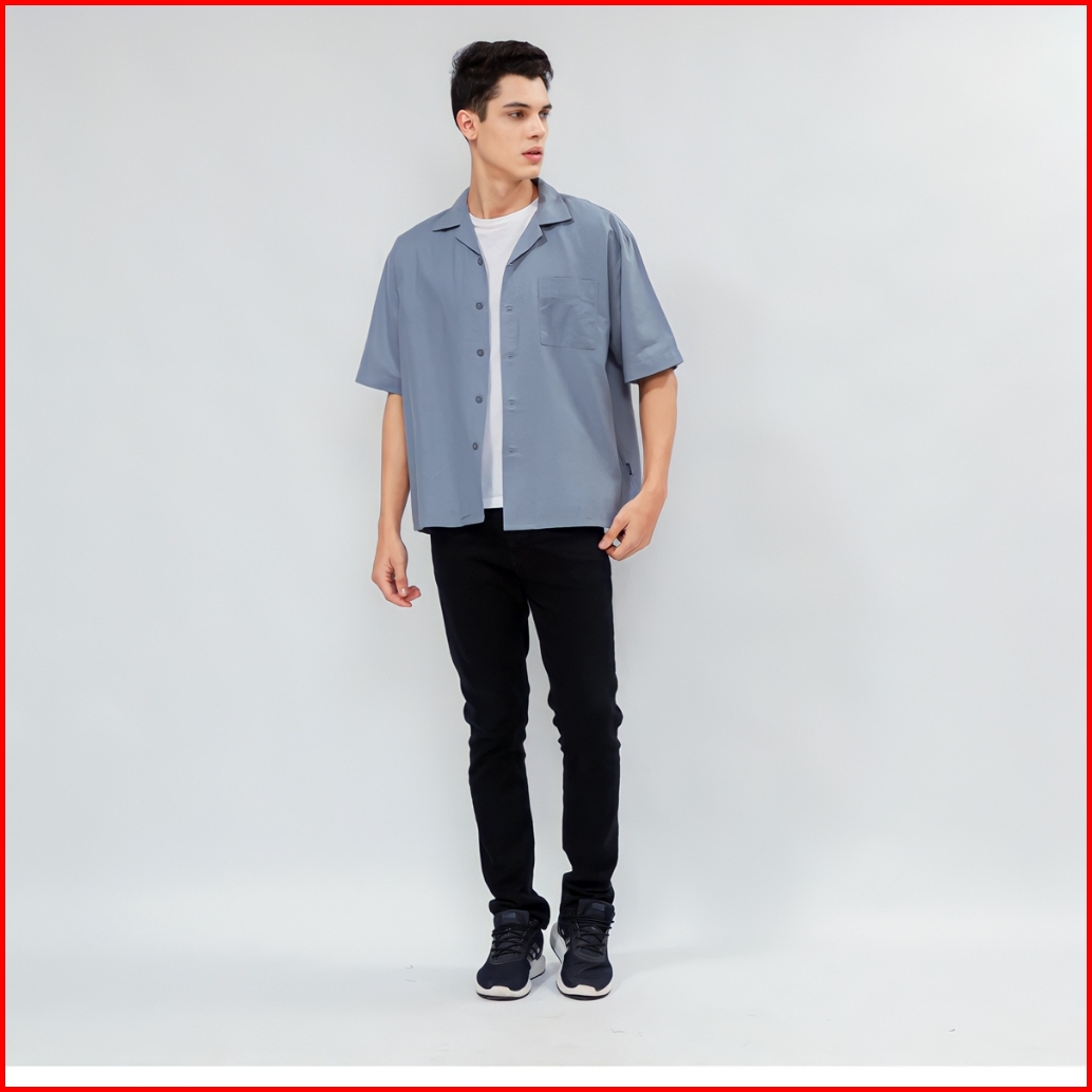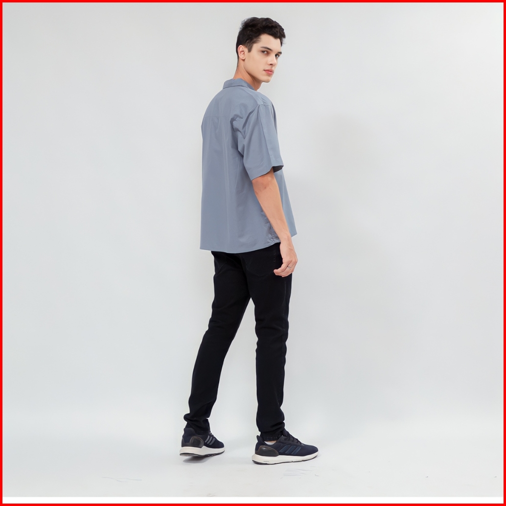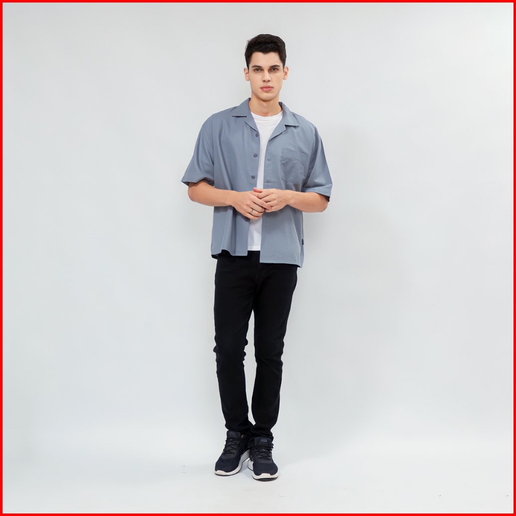 Casualuxe Cuban Bowling Boxy Oversized Linen Shirt Kemeja Polos Kerah Terbuka Lengan Pendek Abu Muda